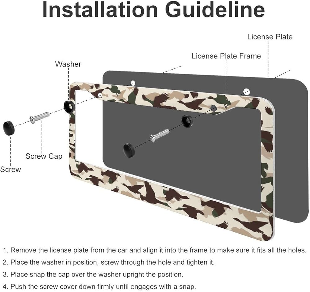 【سهلة التثبيت】 إطار لوحة الترخيص لدينا يتم تضمين جميع الملحقات المطلوبة (4 أغطية برغي ، 4 مسامير ، 4 غسالات). تثبيت سريع وبسيط مع تعليمات سهلة متابعة. يتم تزويد الطرف العلوي من لوحة الترخيص بفتحتين ، والتصميم الثابت المتماثل يجعل كل جزء نفس القوة تحت الضغط ، لا مكان ضعيف ، صلابة قوية ، مضادة للانتقال ، تسهيل التثبيت ، لا يمكن تثبيت أي أدوات خاصة في غضون دقائق قليلة.