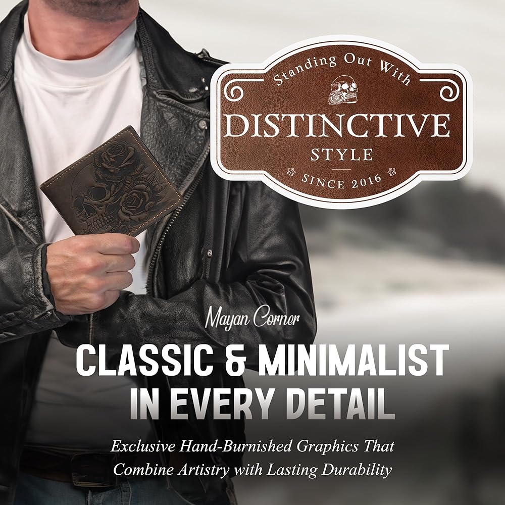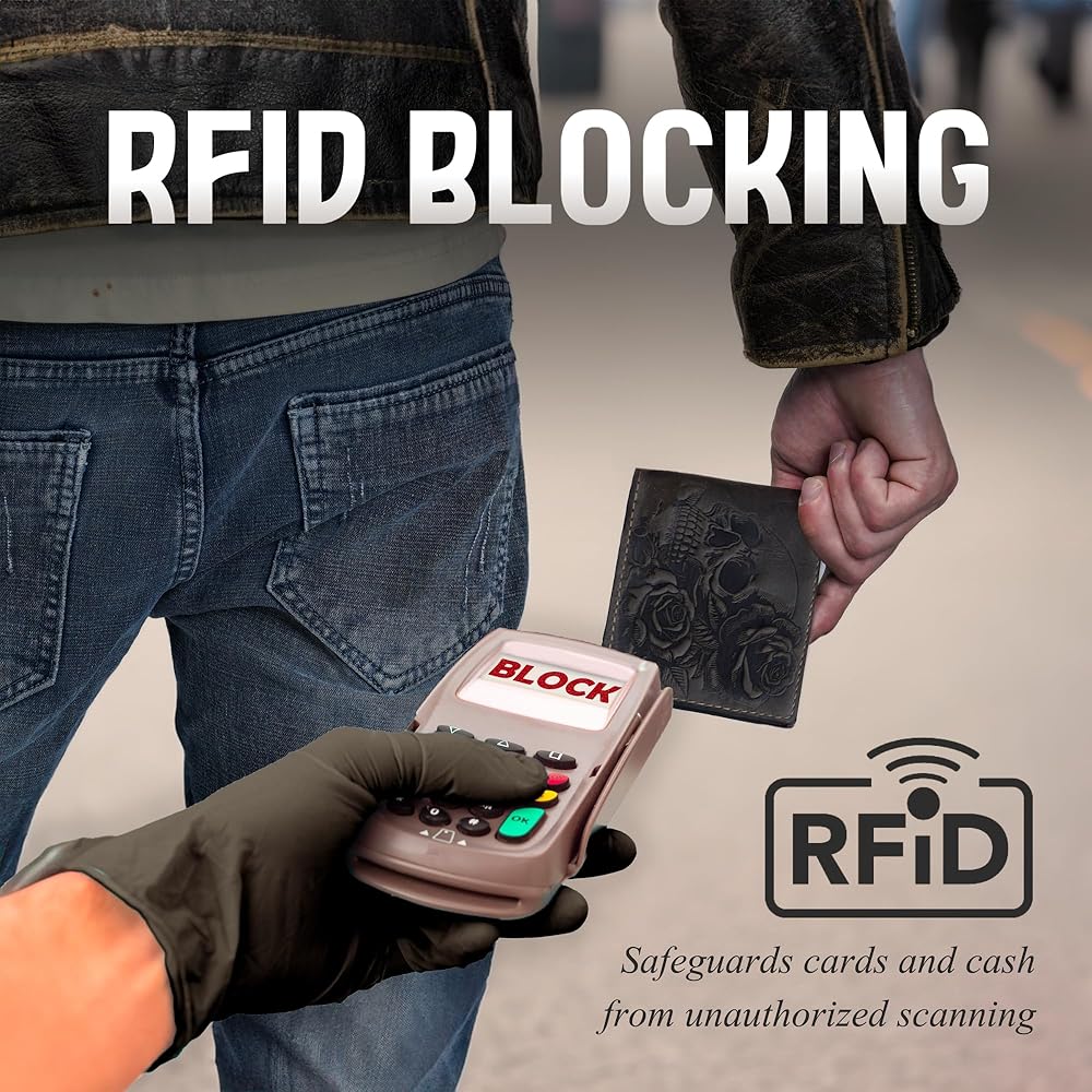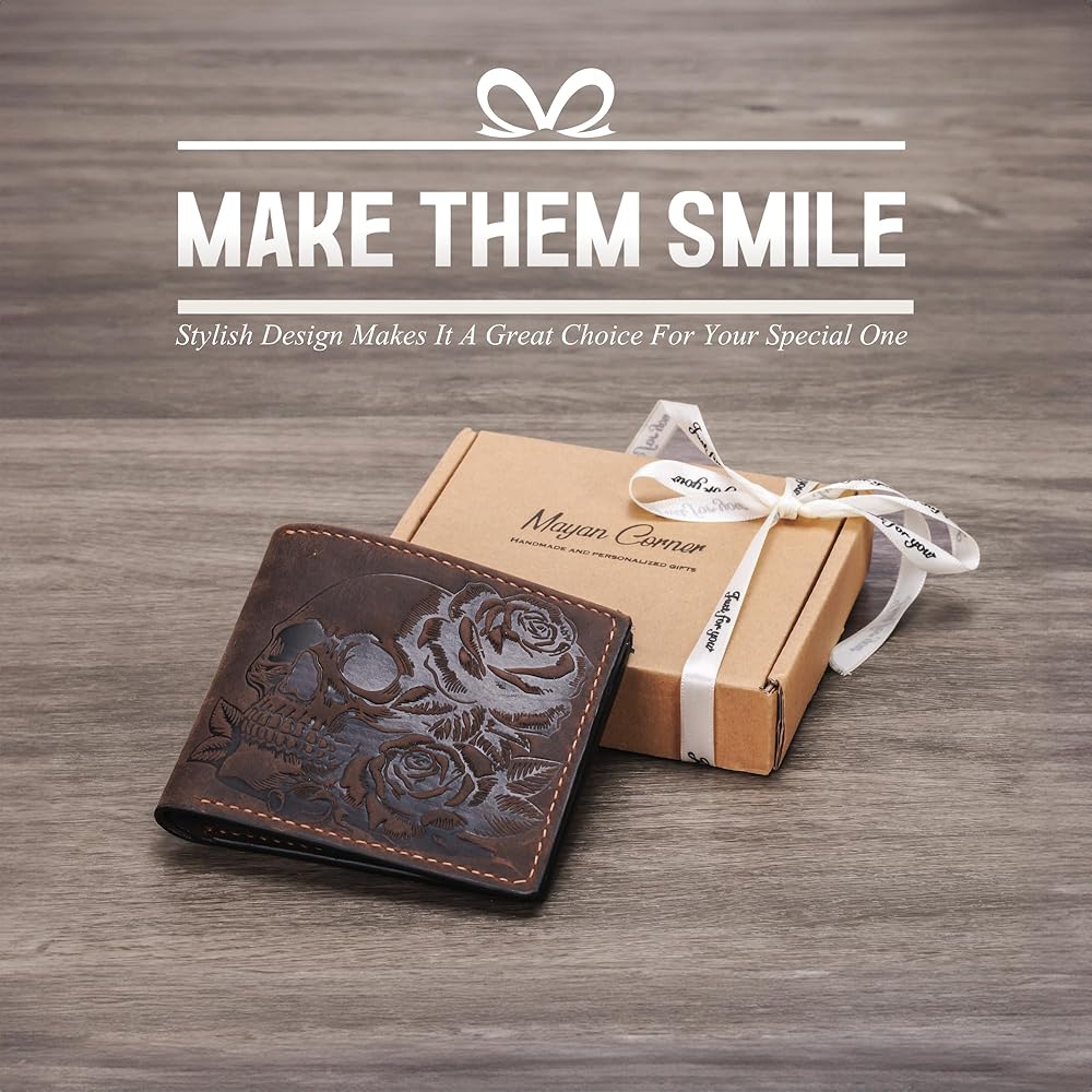 - تصميم فريد: تتميز هذه المحفظة بجمجمة جذابة ونمط وردة منقوشة في الجزء الخارجي من الجلد الأصلي.