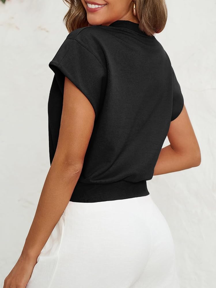 التصميم الأنيق: احتضن مظهرًا حديثًا مع قمة الصيف للسيدات في محصولنا ، والتي تتميز بأكمام V-tech و Cap ، ومزج الأزياء بشكل مثالي ووظائف النزهات أو التدريبات غير الرسمية.