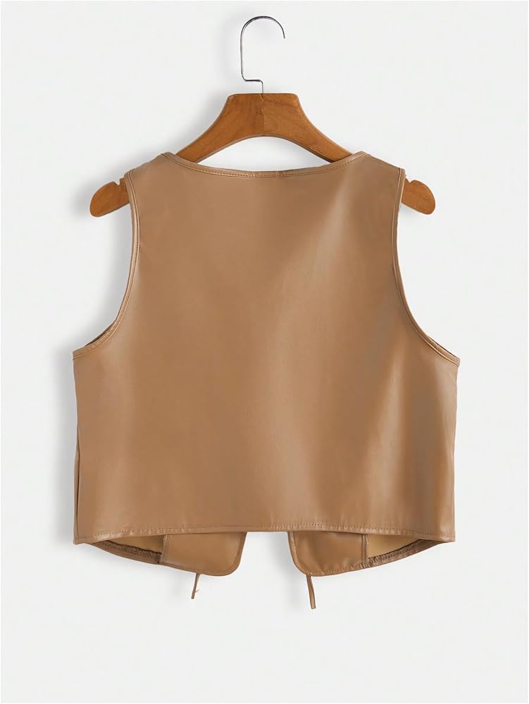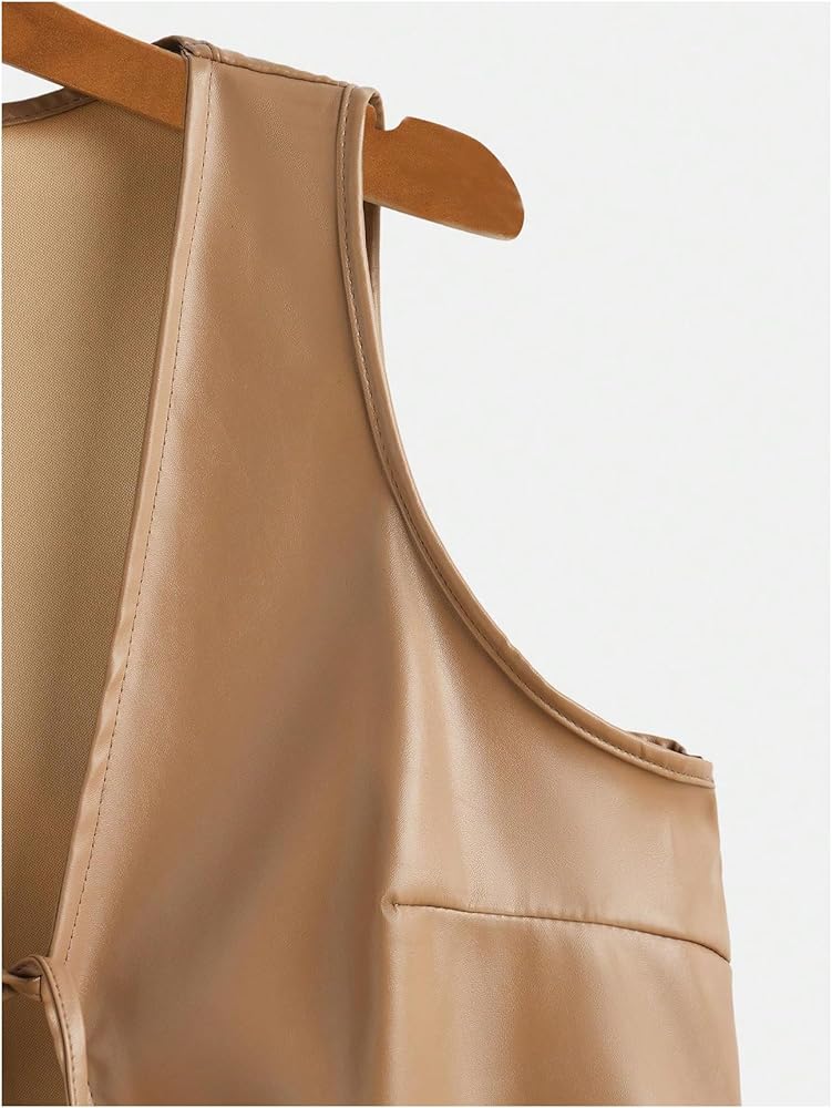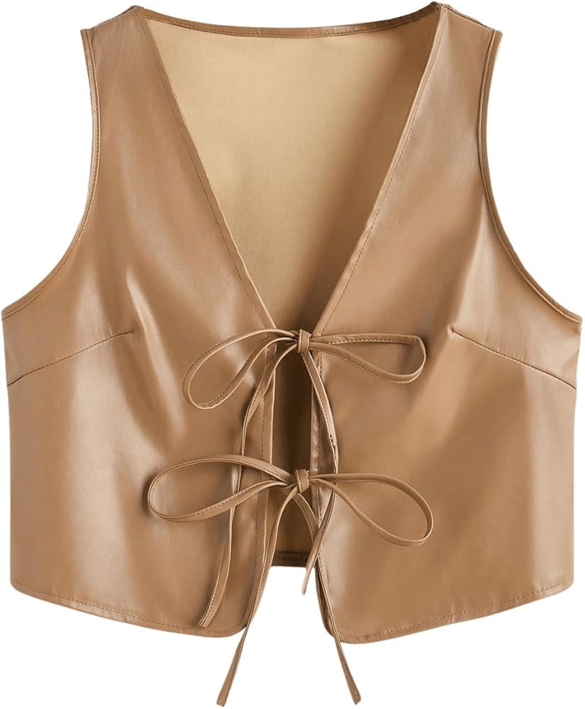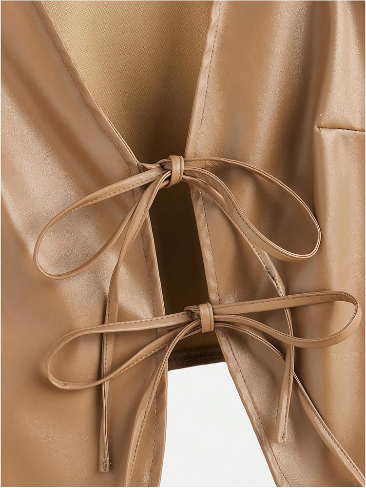 • Features: Sleeveless, tie front, v neck, pu leather, solid, vest jacket for women