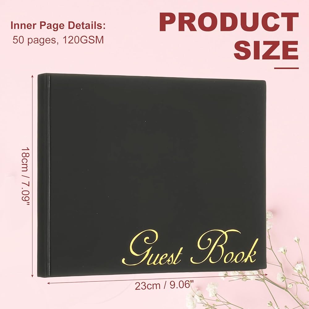 • Specification: Color: Black; Material: PU Leather; Size: 23 x 18cm / 9.06 x 7.09 inch (L*W); Inner Page Details: 50 pages, 120GSM; Packing List: 1 x Guestbook