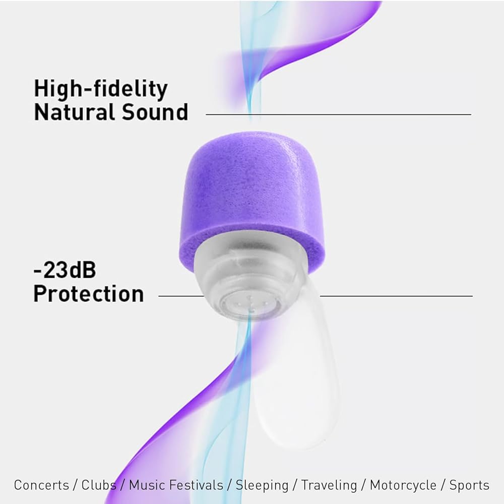 【SUPERIOR HEARING PROTECTION】 Eartune Live Foam ear plugs are tuned to reduce volume yet still allow you to clearly hear music and conversations by maintaining sound quality across the frequency spectrum. Get up to -23dB noise reduction with Eartune Live Foam reuseable earplugs that are perfect for musicians, concerts, festivals, clubs, raves, live music, sporting events, motorcycle, travel and more.