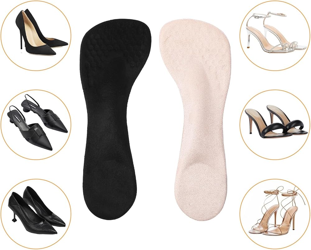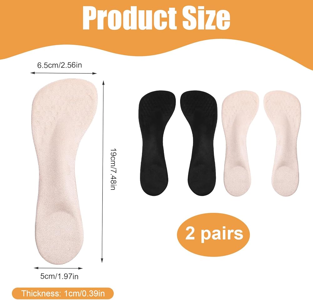 【Universal Compatibility】High heel insoles for women are suitable for almost all types of shoes, such as: flat shoes, slippers, sandals, high heels, leather shoes, loafers, sneakers, etc. No matter what kind of shoes you like, these two pairs of insoles for women heels will let you enjoy arch support. (Applicable to US women's shoe sizes 6-7.5 )