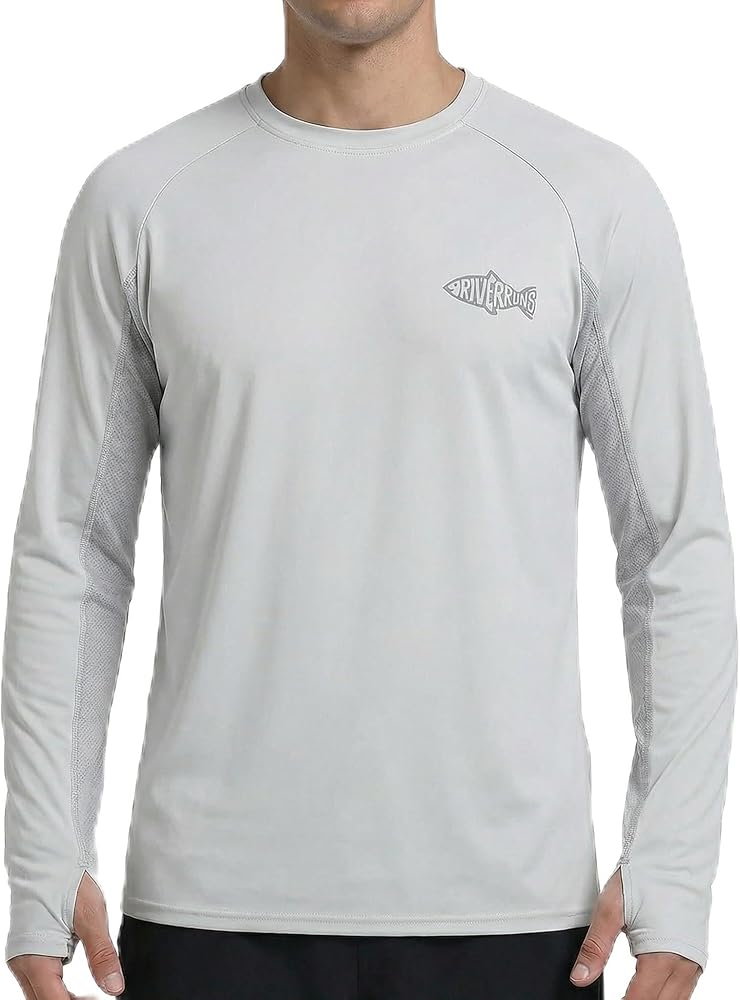 This Riverruns men's long-sleeve tee offers UPF50+ sun protection, blocking harmful UVA and UVB rays to minimize skin damage. Made with quick-dry, moisture-wicking fabric and breathable mesh panels on the sides and back, it keeps you dry and cool during activity. The 4-way stretch design ensures a flexible, comfortable fit, while the raglan sleeves allow for unrestricted movement. Ideal for outdoor sports, beach, fishing, travel, and daily wear, this tee combines comfort, durability, and all-day sun protection.