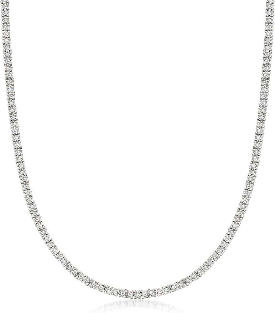 Ross-Simons is the authority on fashionable must-haves. The one you've always wanted! Our fabulous 3.70 ct. t.w. diamond tennis necklace parades 192 round brilliant-cut diamonds around the neckline in a brightly polished setting of sterling silver. Completely timeless, this is a piece you'll treasure for decades as you bask in its universal style and enduring design. Push-button clasp, diamond tennis necklace.