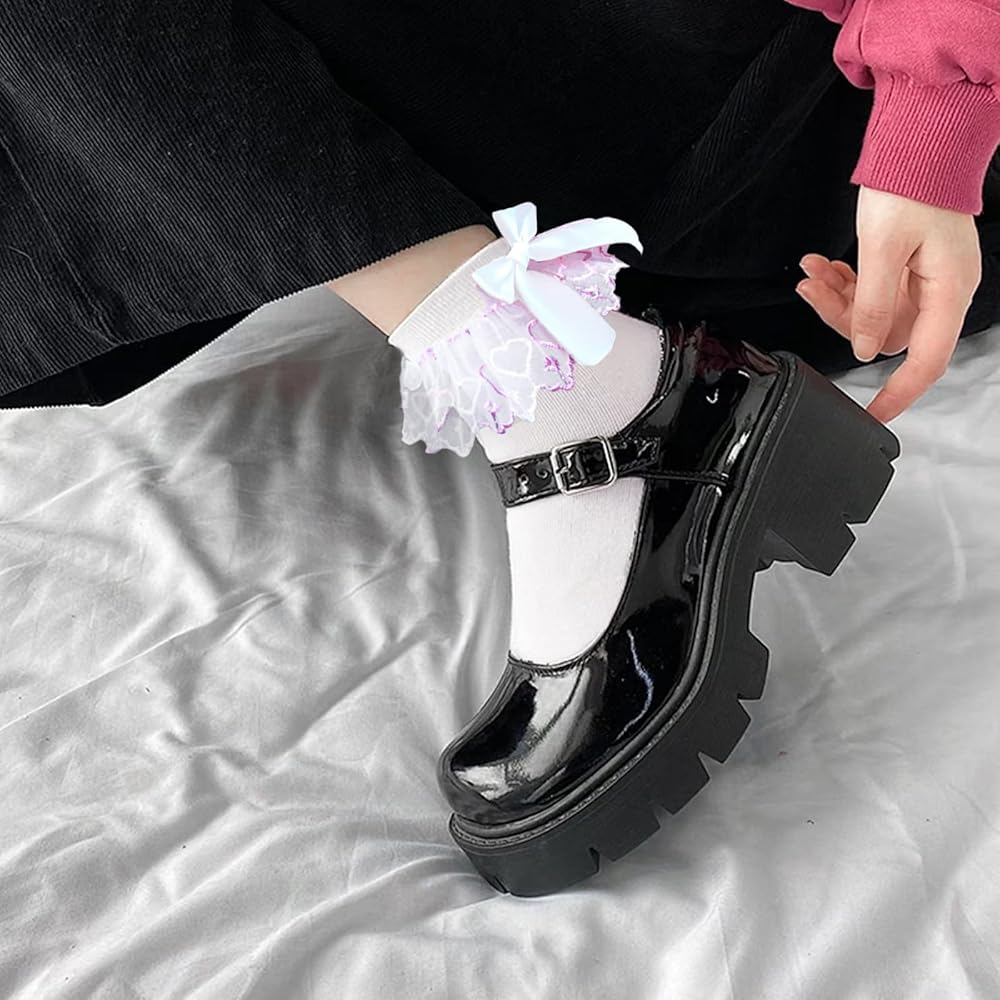 【Lace Ruffle Cotton Socks Material】 The frilly socks with bow for women girls are made of 80% high quality cotton,12% spandex and 8% lace,soft,breathable and lightweight,suitable for all seasons,machine washable