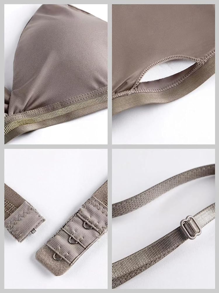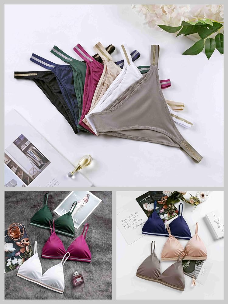 مجموعة حمالة الصدر واللباس الداخلي هذه مصنوعة من نسيج الحرير الجليدي ، مع لمسة ناعمة ومريحة للغاية. تحتوي حمالة الصدر على حشوة وهي بدون تقييد حلقة فولاذية ، واللباس الداخلي على غرار بيكيني الحرير الجليدي الثلاثي.