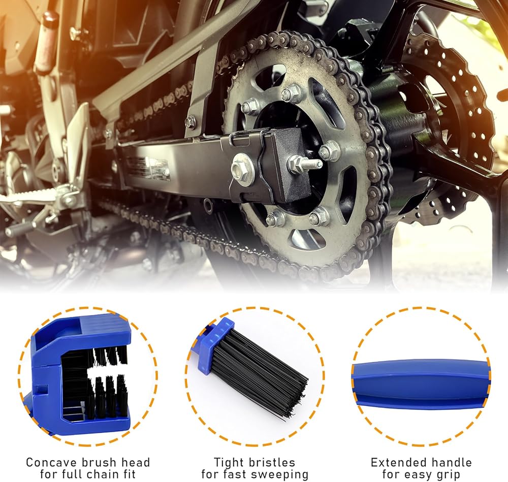 【Dense Bristles】: This chain cleaning brush has thick and dense bristles that provide excellent cleaning capabilities. In addition, the bristles are soft and firm enough to ensure cleaning power without causing damage to the motorcycle chain and other parts of the motorcycle.