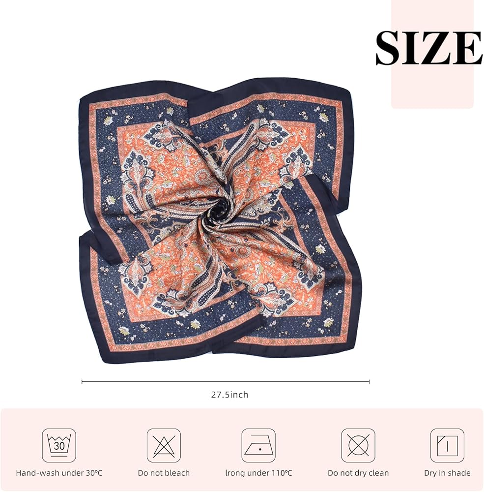 • ✔ 70 × 70 سم الحجم المثالي - تصميم مربع سخي لتصميم متعدد الاستخدامات مثل أغطية الرأس ، أو العنق ، أو ملحق الشعر ، أو زخرفة حزام الأكياس ، أو حزام الخصر.