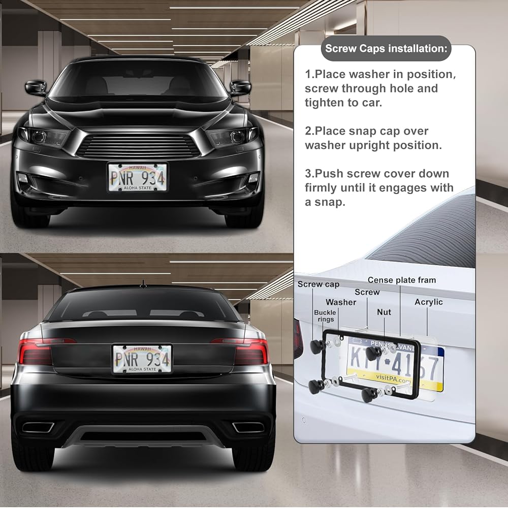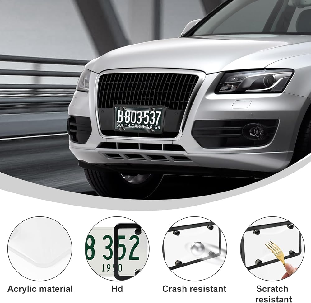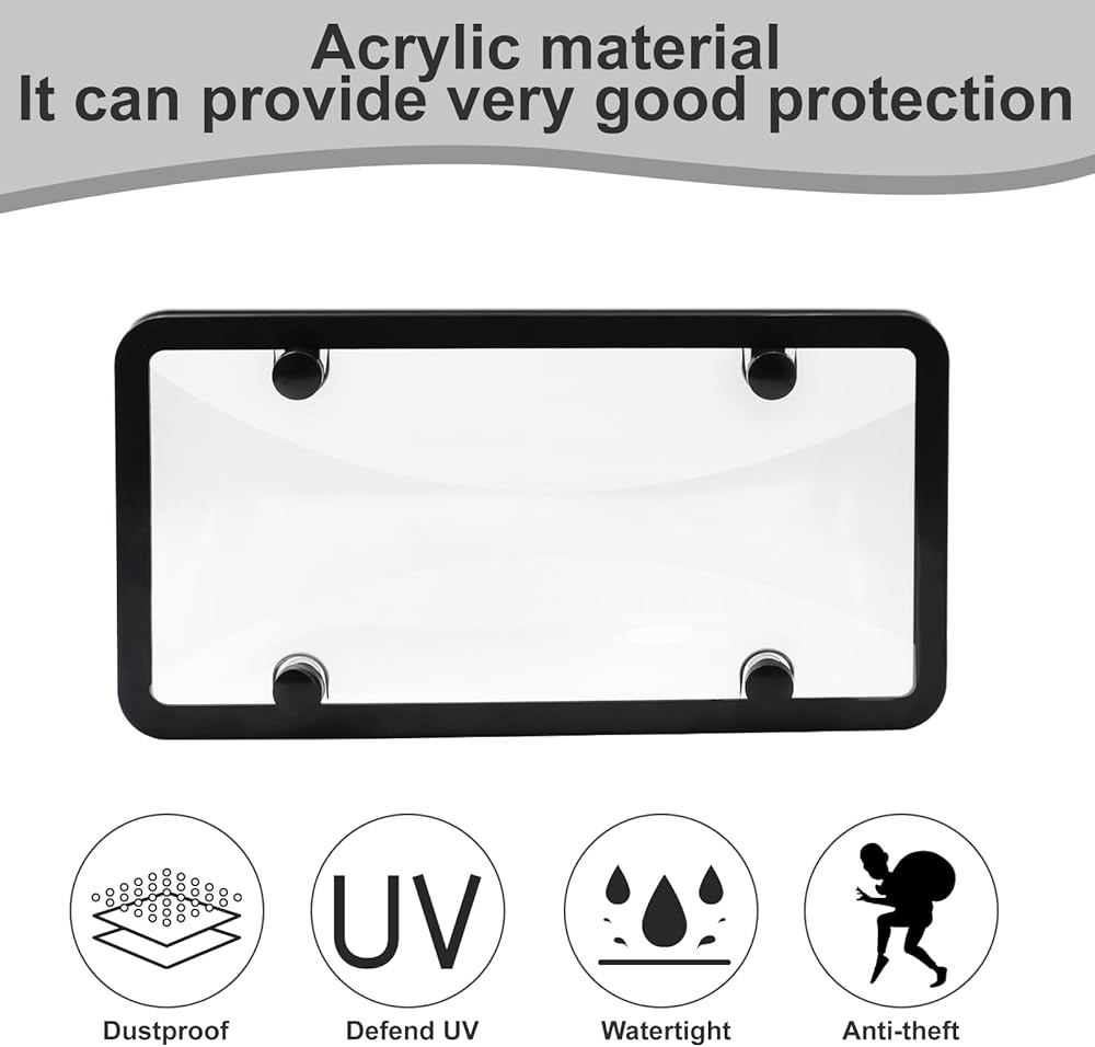 Crafted from heavy-duty, weather-resistant materials, our license plate cover delivers superior protection against scratches, dust, and harsh elements. The ultra-clear acrylic board ensures a scratch-resistant, high-definition display, keeping your license plate information fully legible while safeguarding its pristine condition.