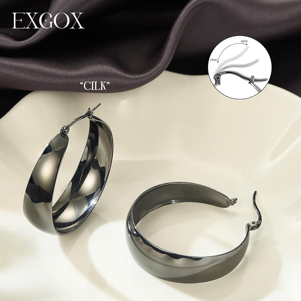 Wide Design Silver Hoop Earrings: This hoop earrings for women are designed with a classic wide shape, the fashionable design of narrow top and wide bottom perfectly suits any of your outfits, and the premium smooth curved surface of the earrings brings you a comfortable wearing experience. Besides these thick hoop earrings are very lightweight and comfortable and will not burden your ears at all!