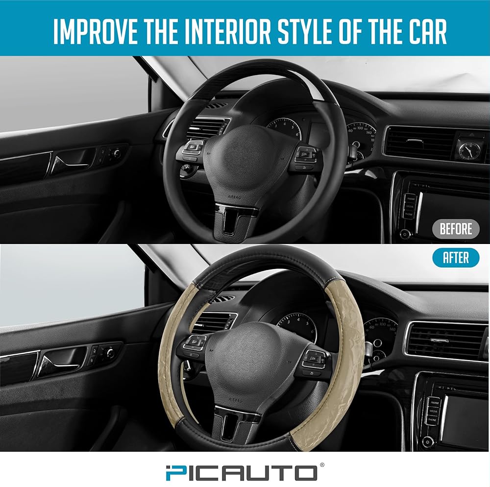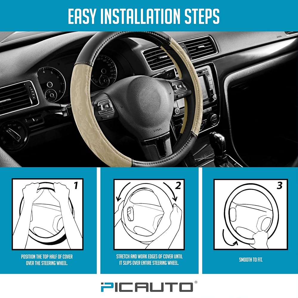 • من السهل التنظيف - سطح جلد الحبوب الحريرية سهل المسح والحفاظ عليه ، مما يضمن أن غطاء عجلة القيادة الخاص بك دائمًا يبدو جديدًا ونظيفًا.