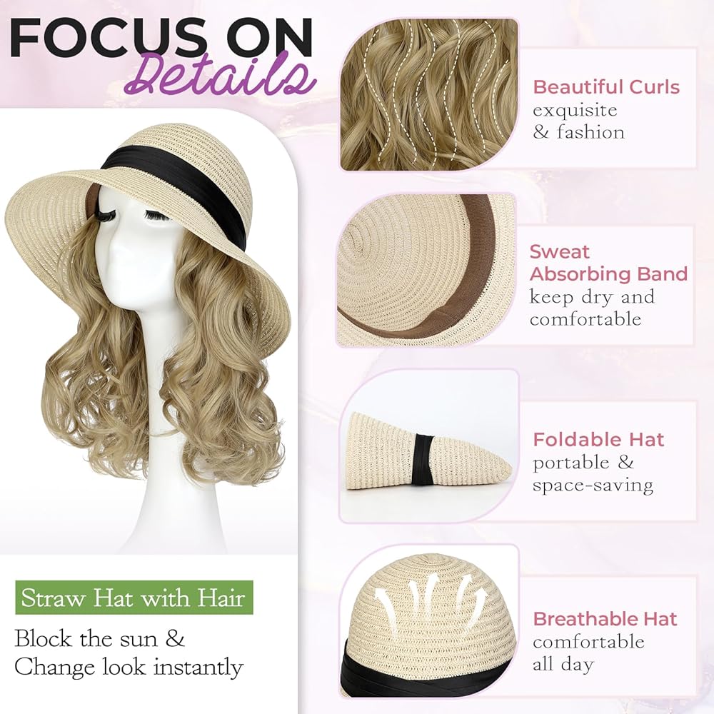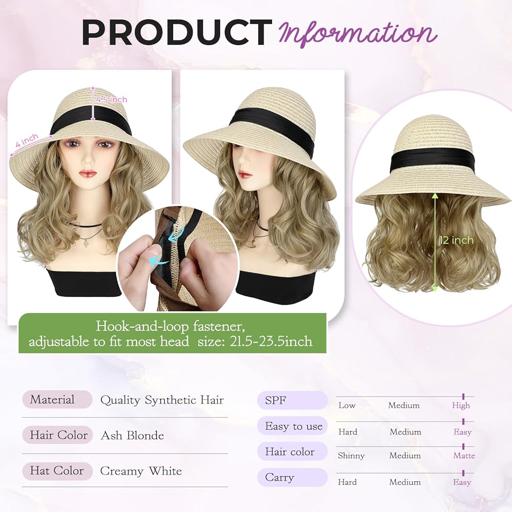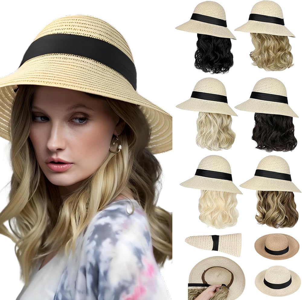 • تصميم قابل للفصل للاستخدام المزدوج: تتميز القبعة ذات الشعر المرفق بتصميم قابل للفصل ، مما يتيح لك ارتدائه بطريقتين: كقبعة قش مستقلة أو بشعر متموج متصل. هذه المرونة تجعلها مثالية للمناسبات المختلفة ، سواء كنت تريد نظرة غير رسمية أو أكثر تفصيلاً