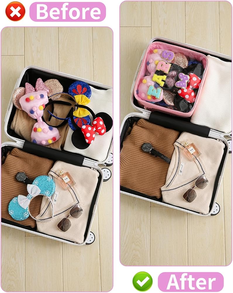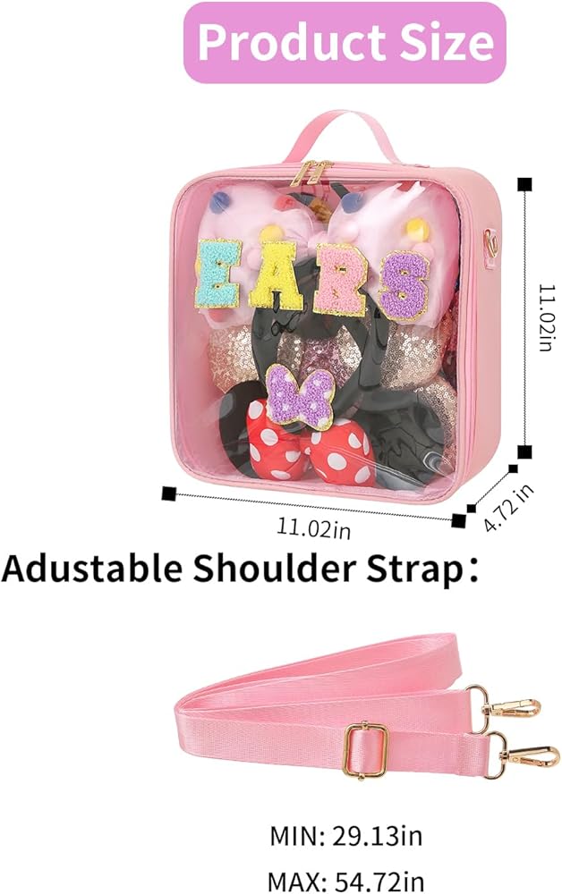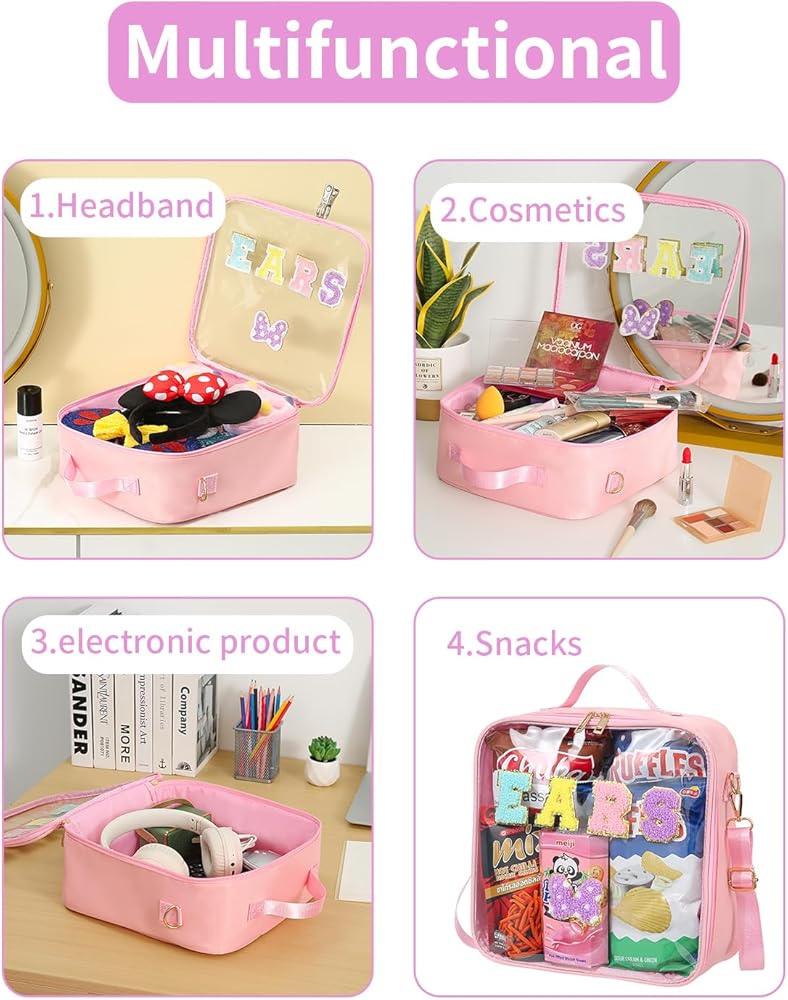 【غلاف PVC واضح - عرض أسلوبك】 ابحث بسرعة وعرض آذان الماوس المذهلة مع غطاء PVC شفاف من حقيبة السفر الصافية. تبرز مع Chenille Lettering on the Hair Organizer Storage ، مما يجعل حقيبة Travel Mouse Ears Assity Assily and Freefians Adventures.