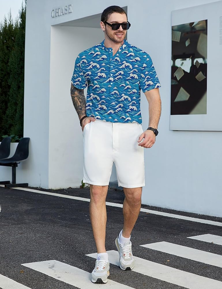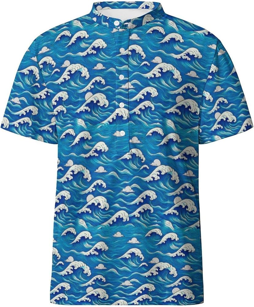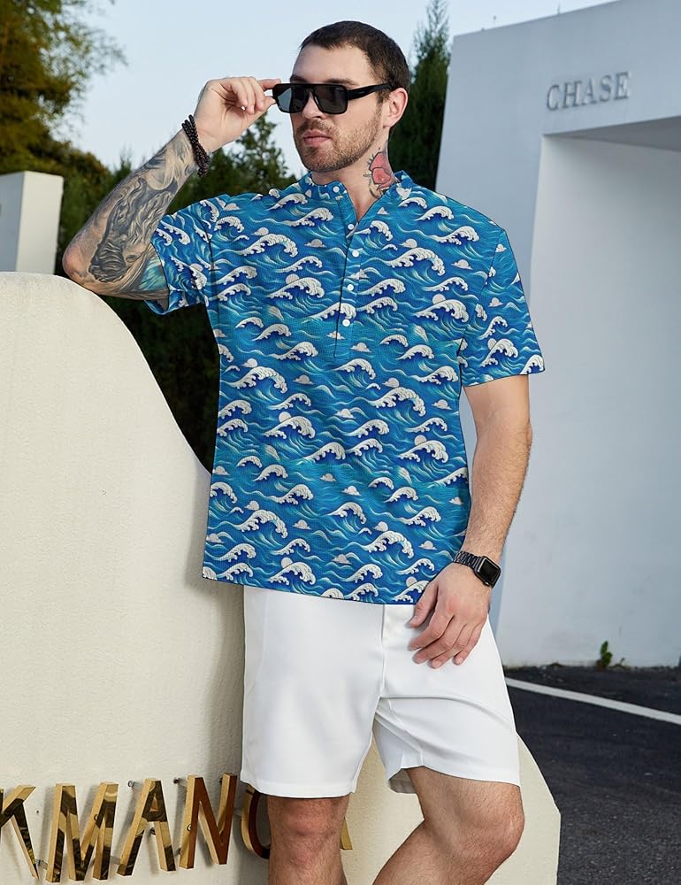 BUTTON DOWN HENLEY MEN GOLF SHIRTS PRINTED: DOPINDU mens collarless henley shirts funny print golf polos come in a variety of bold, unique, and playful print designs that combine style and function. Gym athletic henley printed shirts for men add a fun touch to the standard golf apparel, making you stand out from the usual performance polo crowd.
