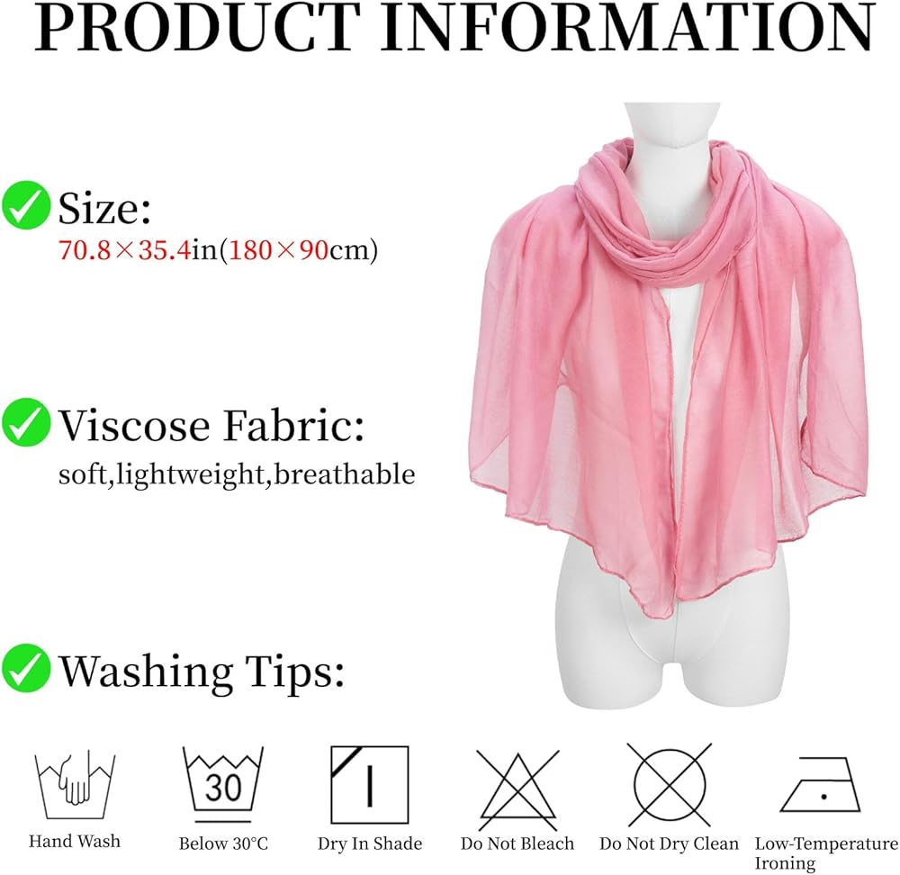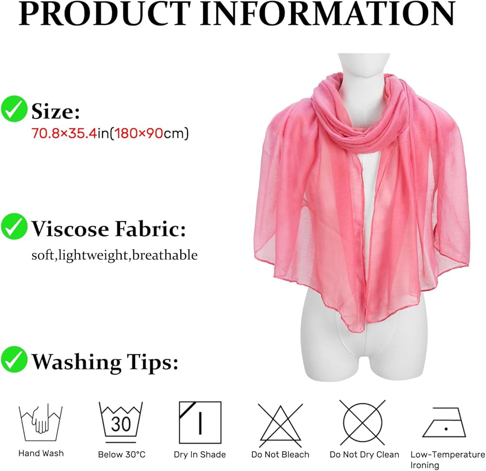 طرق متعددة الملابس - أحلافنا الخفيفة الوزن الخفيفة حوالي 70.8 × 35.4 بوصة (180 × 90 سم) ، واسعة بما يكفي لتكون مرنة لاستخدامات متعددة. أضعافها لتكون وشاح الرقبة ، وشاح الشعر أو الحزام ؛ تتكشف عن أن تكون شال زفاف أو منشفة الشاطئ أو تستر بيكيني. سواء كان ذلك للدفء أو حماية الشمس أو كملحق للأزياء ، يمكن أن تجلب لك الأوشحة الشتوية التوازن المثالي للراحة والأناقة