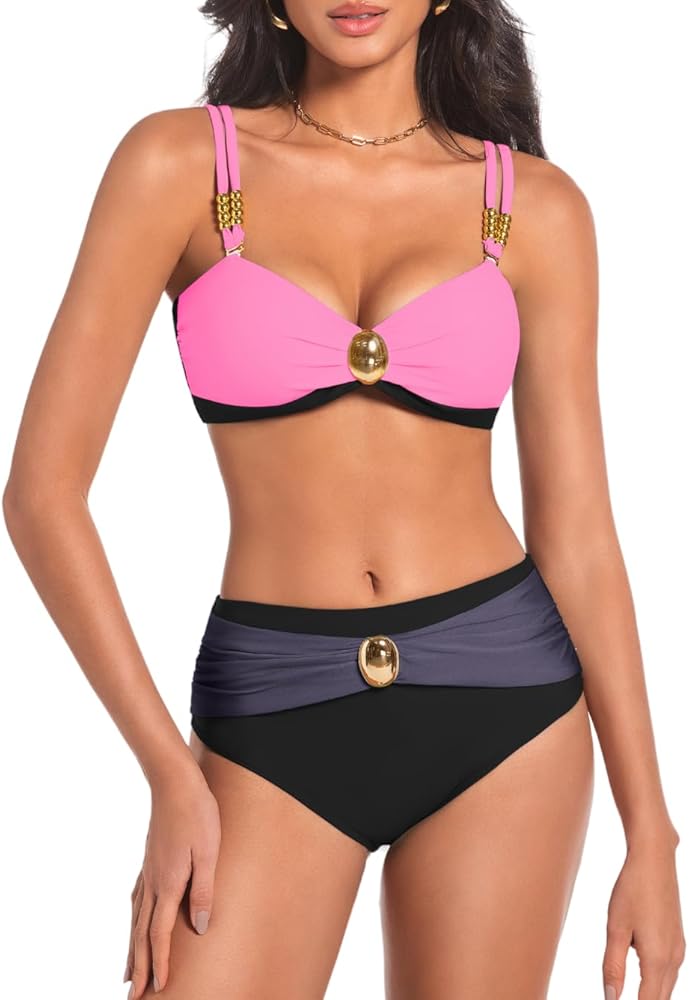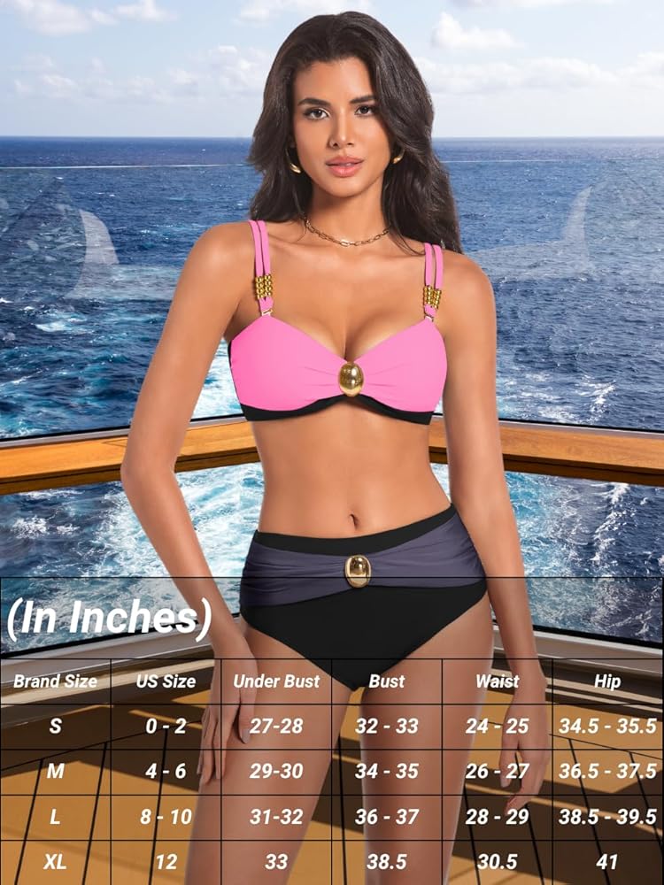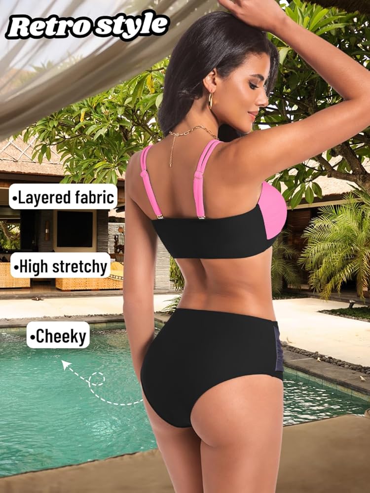 【Feature】V Neck Bandeau Top / High Waisted Cheeky Bottom