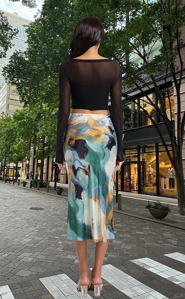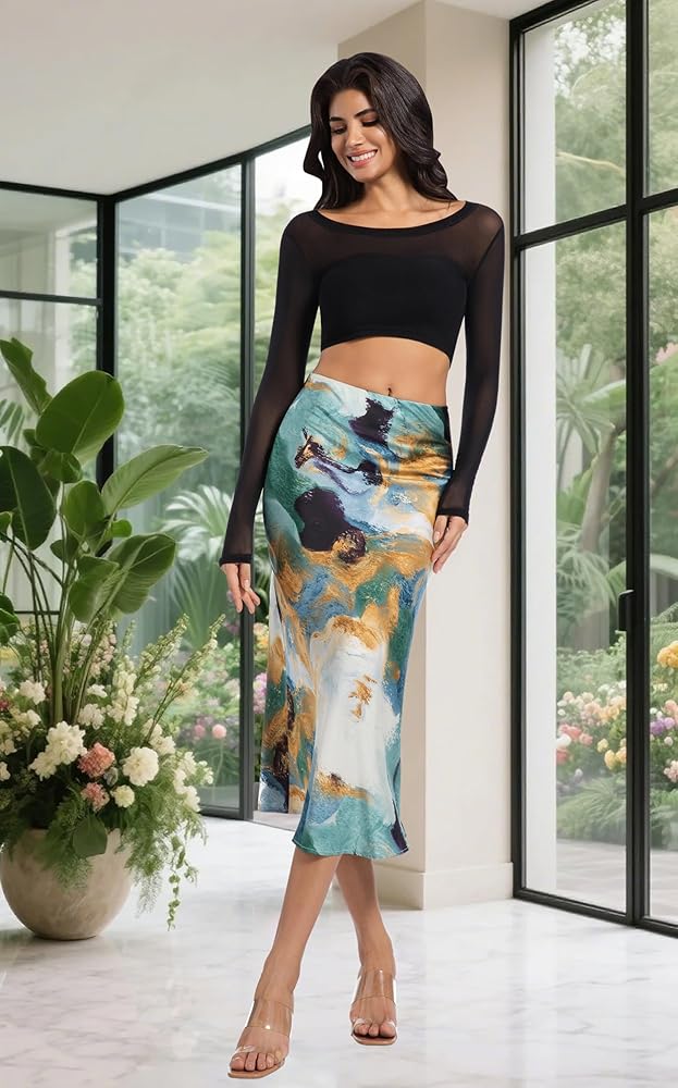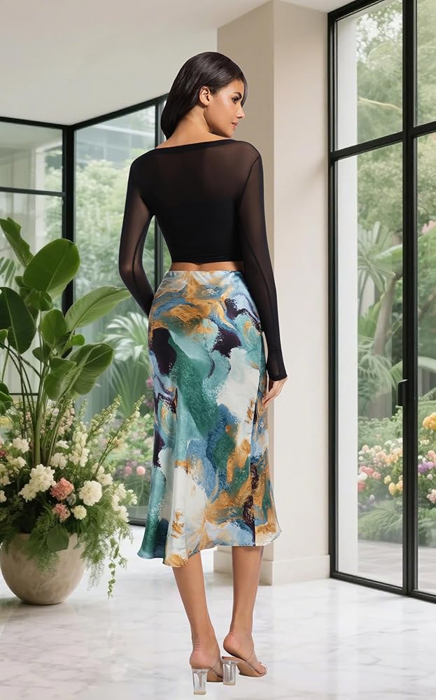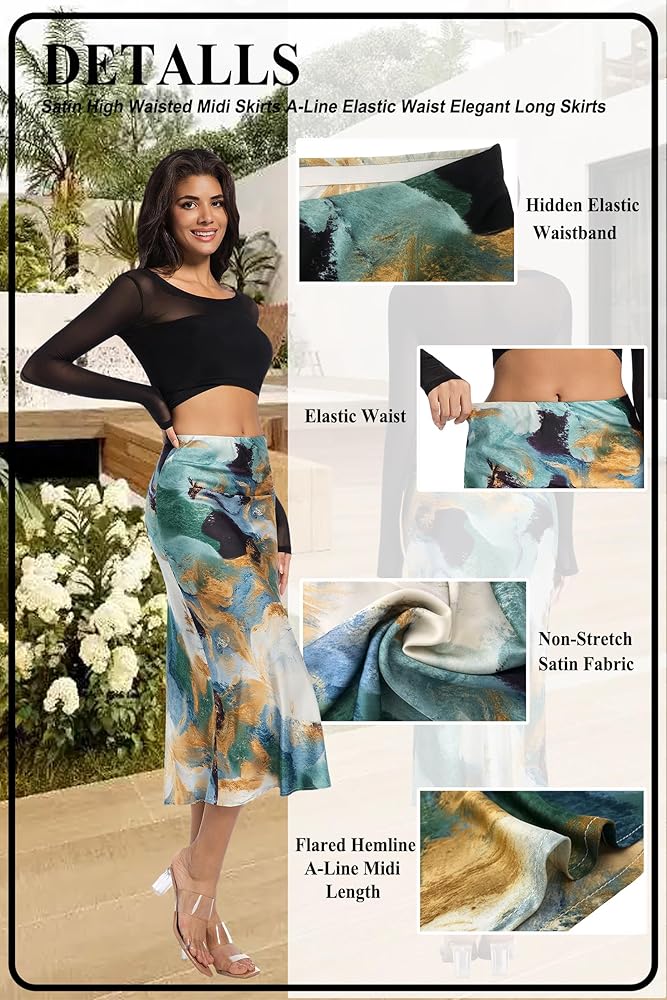 المادة: تتنورة MIDI Material Material Material Material من النسيج الساتين الصديق للبشرة والبلدان وخفيف الوزن.