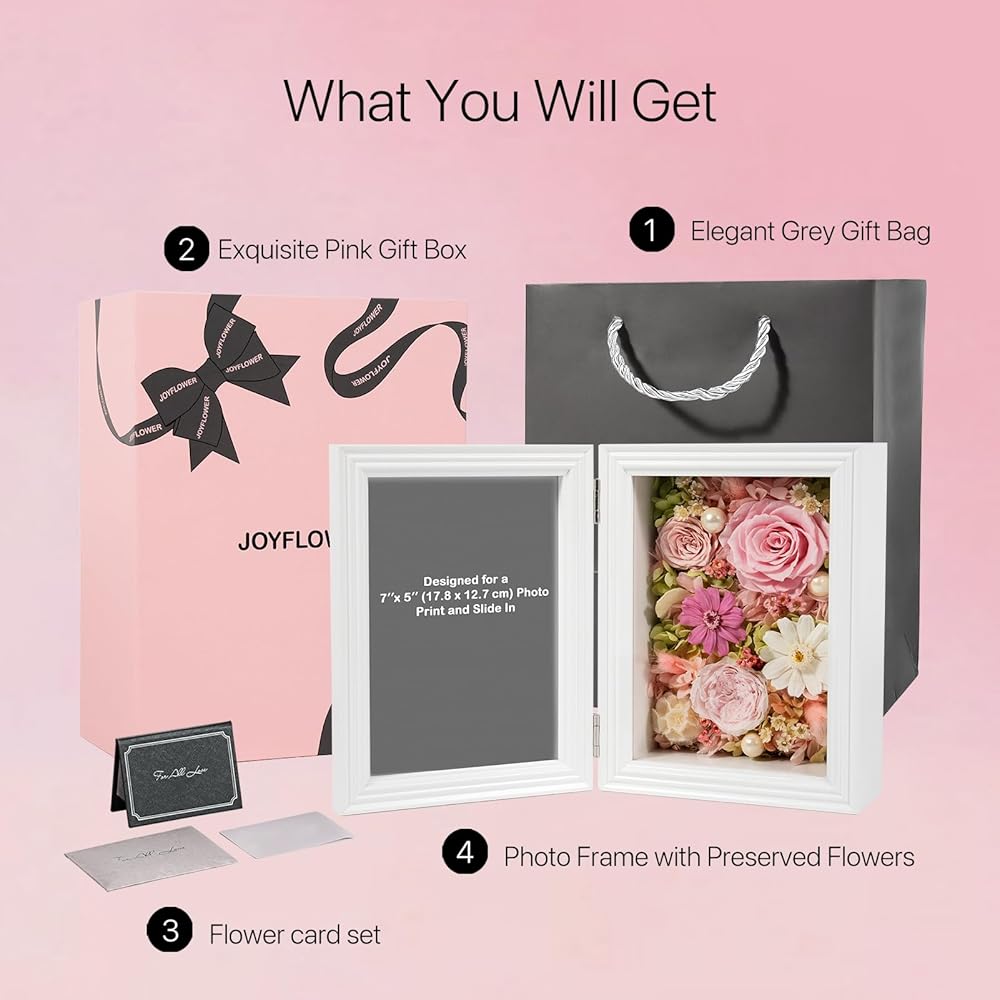 الزهور المحفوظة لـ Joyflower مع إطار صورة 5 × 7 ، إطار صور الورود الأبدية الحقيقية ، وردة محفوظة إلى الأبد هدية مائية ديزي للزوجة ، صديقة ، أمي ، الجدة في عيد ميلاد عيد الأم