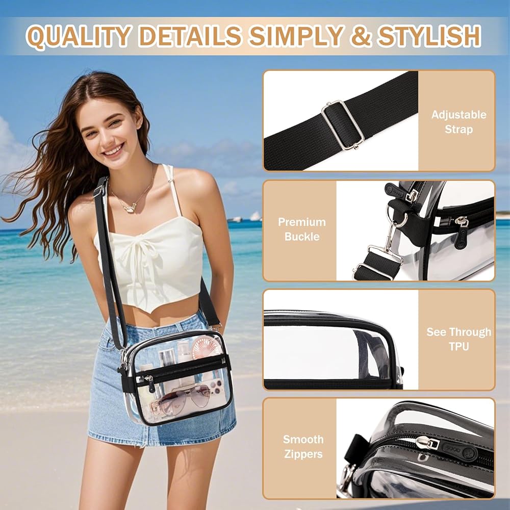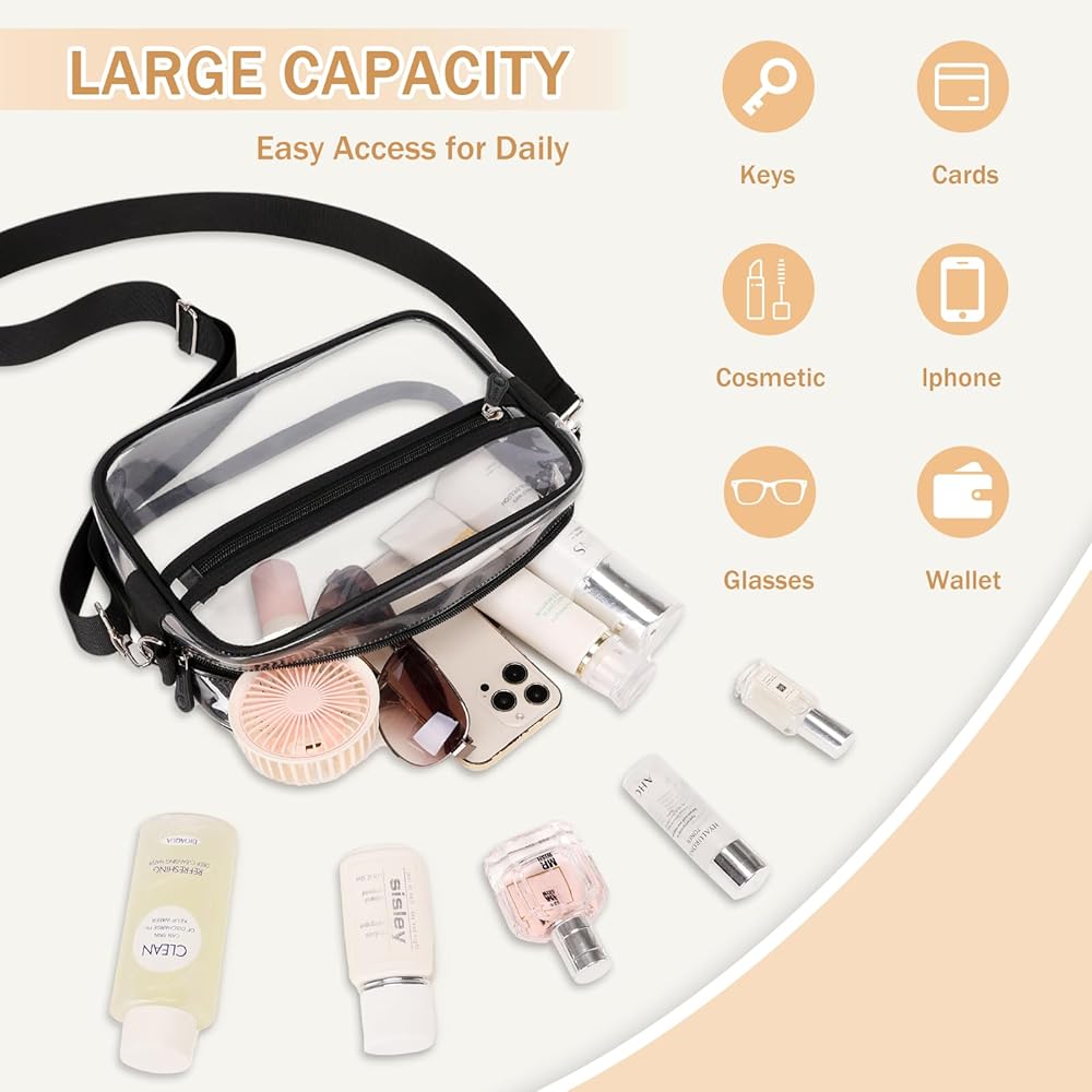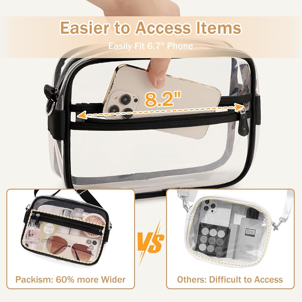 احصل على الأمان بسهولة: حقيبة محفظة Clear Crossbody مع رؤية كل مكان ، بما في ذلك الظهر. تمر عبر الأمن مع حقيبة اليد الصافية لتجنب الرفض في المطار أو في بوابة الاستاد