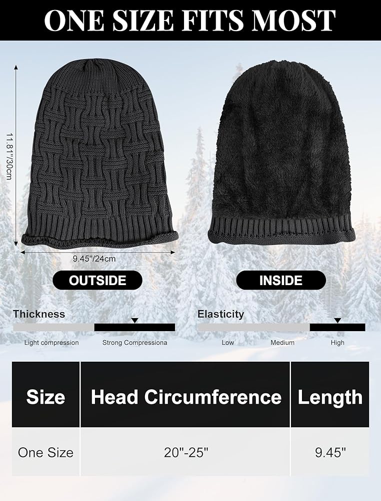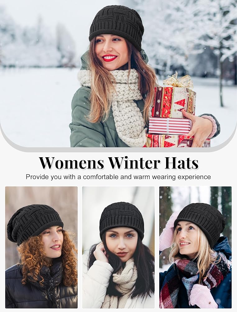 • One Size Fits Most: Winter hats for women circumference ranges from 20 - 25 inches, and the highly elastic knit design will fit your head; Oversized, slouchy beanie hat for women, simple but timeless