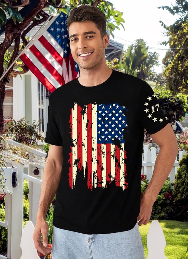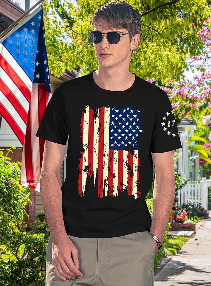 الميزات: القمصان الرابعة من يوليو للرجال ؛ رجل القمصان الوطنية. قميص رسم العلم الأمريكي. USA LETTER PRINT TEET TOPS ؛ 1776 tshirts ؛ القمصان الأمريكية ملابس الحرية كلاسيكية قصيرة الأكمام من طاقم الاستقلال يوم الاستقلال