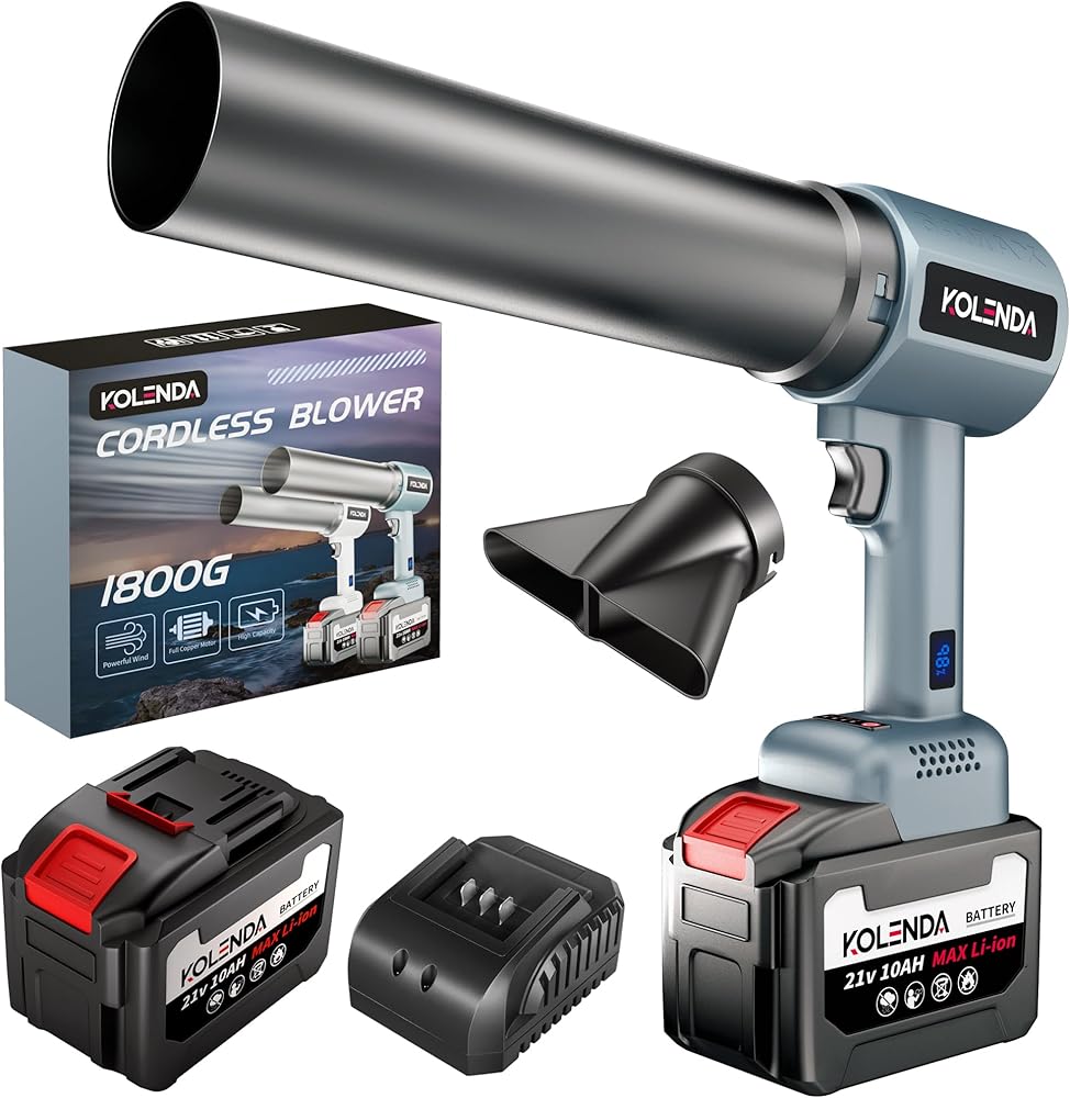 • 【بطارية عالية السعة ووقت التشغيل الممتد】 Kolenda Cordless Dryer Dryer Plower تتميز بطارية 21V-10.0AH مع 4 أوضاع سرعة قابلة للتعديل (25-230 دقيقة في وقت التشغيل) وشاشة طاقة ذكية. مثالي لتنظيف الفناء لفترة طويلة ، وتجفيف السيارات ، ورعاية العشب. نظام السلامة المدمج يضمن تشغيل موثوق.