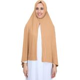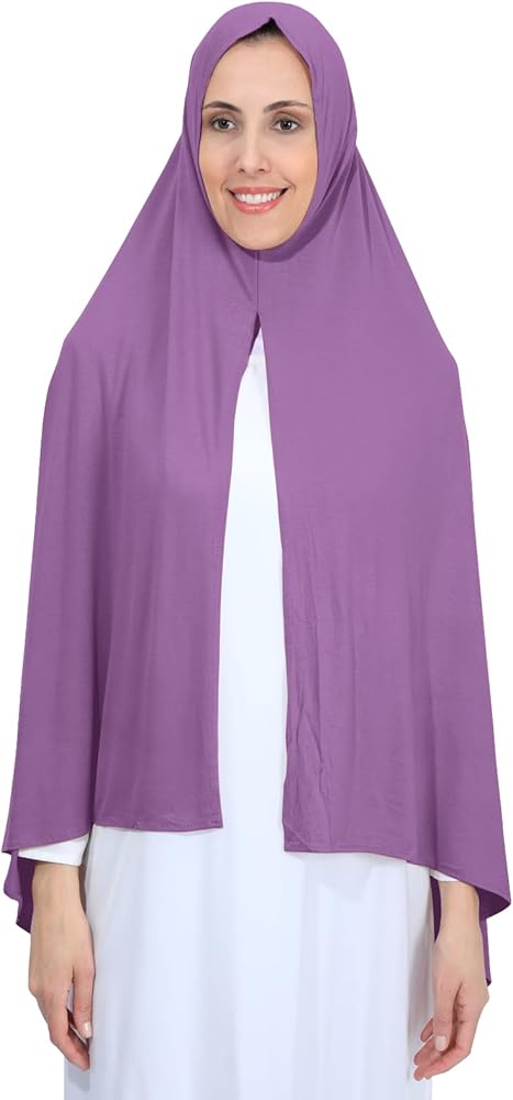 • [EASY TO WEAR] 70 in * 30 in. Non-see through Mercerized cotton hijab scarves. Pre-sewn, no need for hijab pins. You just slip it on, wrap one side around the other shoulder