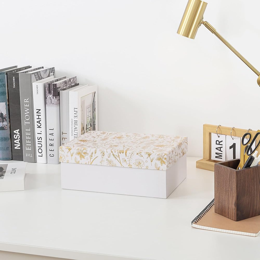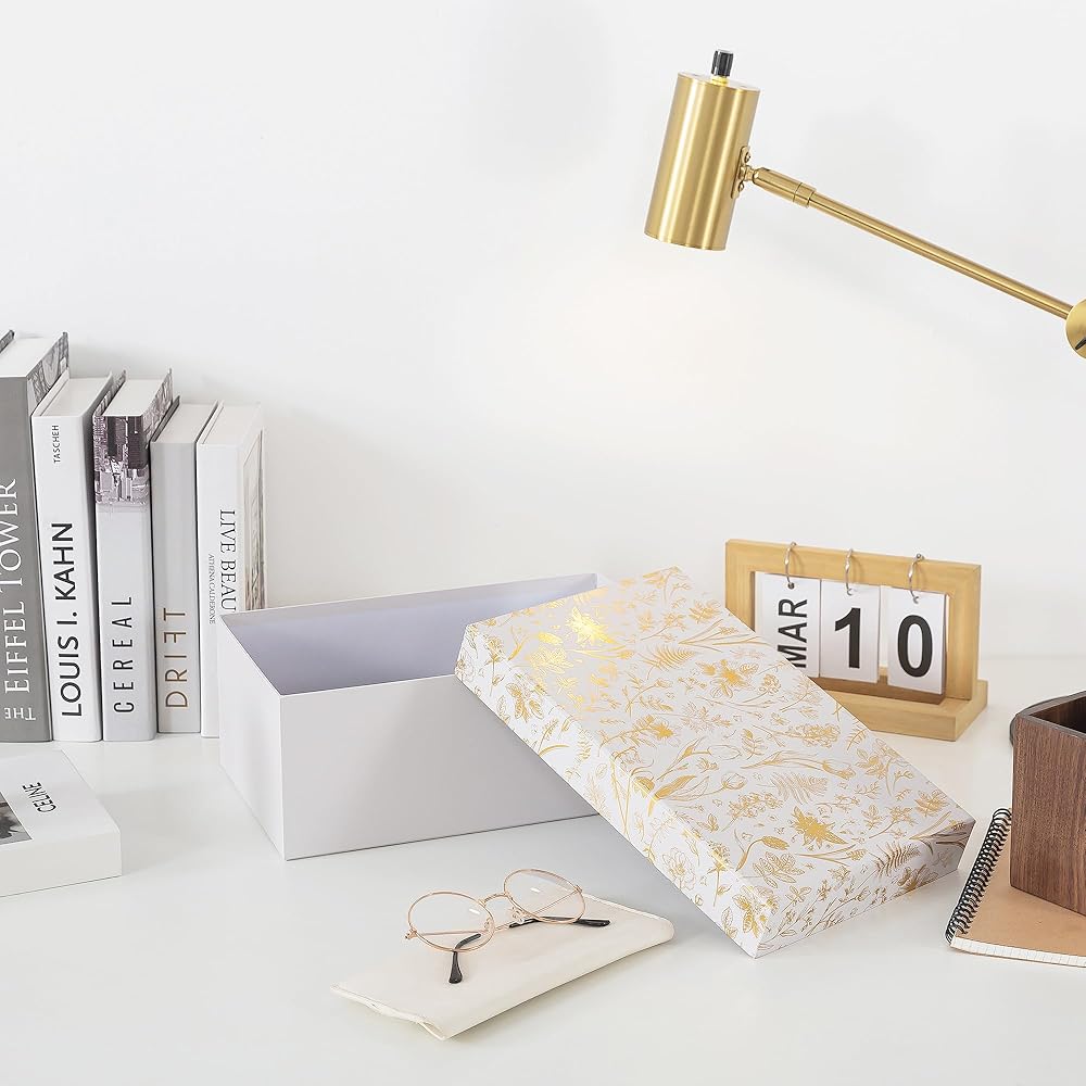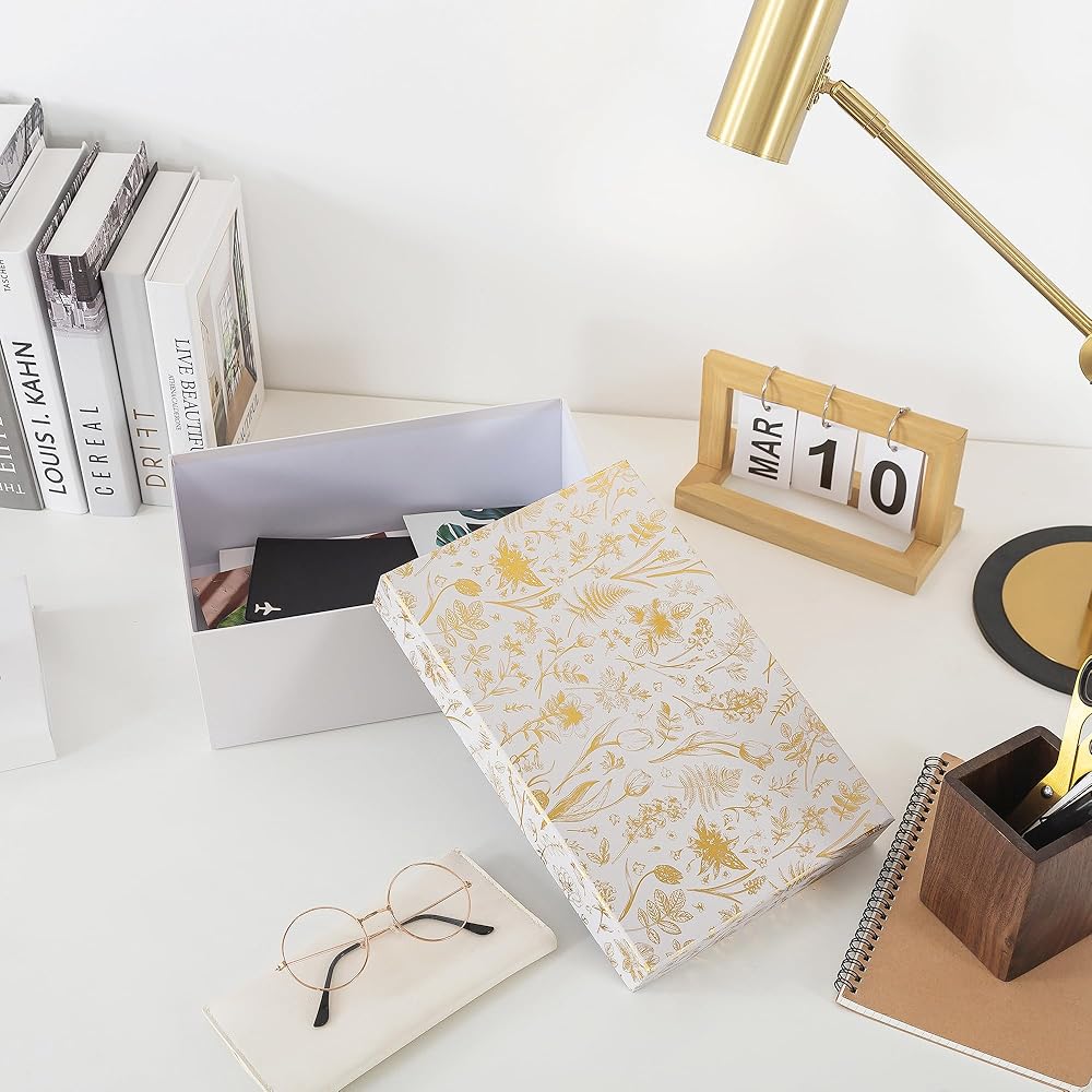 Transform your photo organization with these elegant Golden Bloom storage box. This sophisticated photo memory box combines practical storage with beautiful design, featuring a delicate gold floral pattern that adds elegance to any space.