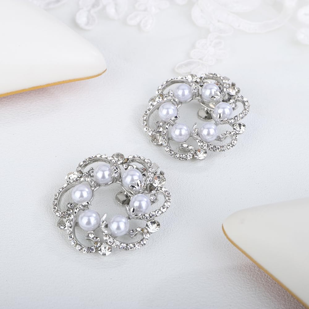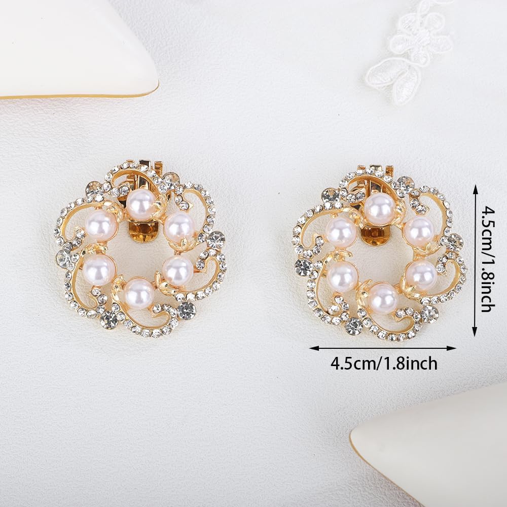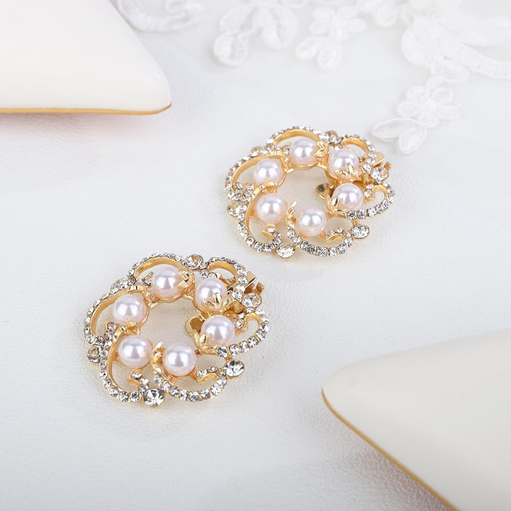 JWICOS 2 قطعة من مشابك الأحذية اللؤلؤية النسائية المستديرة من الكريستال أبازيم الأحذية الأنيقة القابلة للإزالة ومشابك الأحذية المزخرفة من حجر الراين إكسسوارات لحفلات الزفاف وحفلات التخرج والكعب المسطح