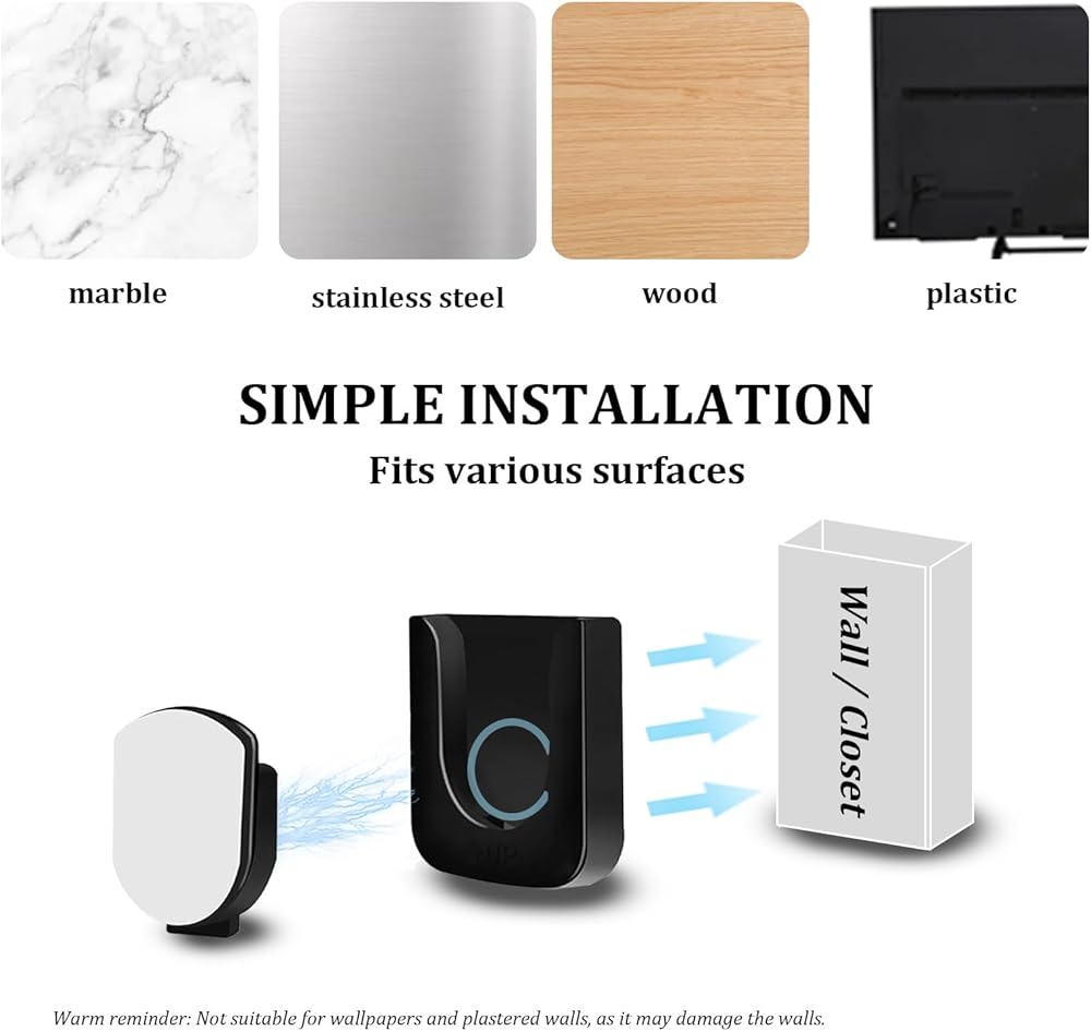 • تثبيت عدم الحفر: يتميز الحامل البعيد بظهر لصقه ذاتيًا ، مما يلغي الحاجة إلى الحفر. ما عليك سوى تقشير الدعم اللاصقة وعصاه في موقعك المطلوب - سريع وسهل. بالإضافة إلى ذلك ، فإن المادة اللاصقة قابلة للإزالة ولا تترك أي بقايا وراءها