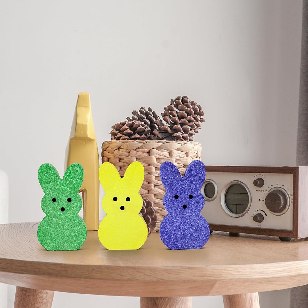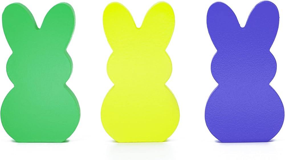 سحرة ديكور Tabletop Enchanting Easter - 6 مساءً ، إحضار سحر الربيع إلى منزلك مع مجموعة أرنب خشبية سهلة المكونة من 6 قطع! كل 15 سم مصنوع يدويًا (5.9 ") H × 1.8 سم (0.7") يتميز T easter decoration بتصميمات مستوحاة من الزجاج المبهج باللون الأصفر والبرتقالي والوردي والأرجواني والأزرق-مثالي لإنشاء شاشة TableScape أو الرف في عيد الفصح الاحتفالي.