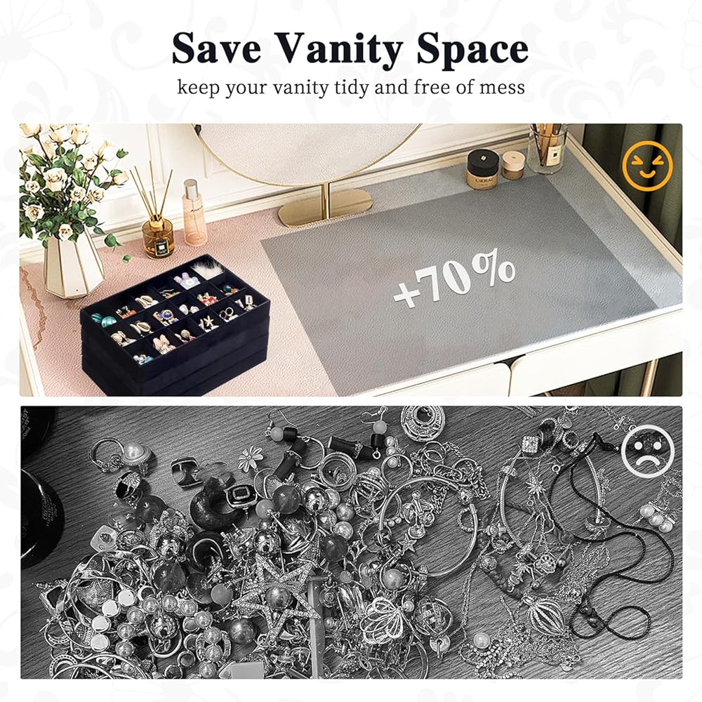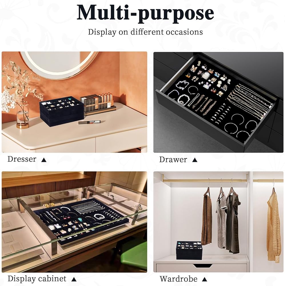 • منظم المجوهرات: حجم منظم المجوهرات للدرج هو 24*15*3cm (9.4*5.9*1.1inch) ، من السهل تكديس صينية منظم المجوهرات ويمكنك أيضًا إدراج صواني المجوهرات في درج ، وتوفير مساحة لمرضيك أو خزانة. لن تنزلق صواني المجوهرات. بالإضافة إلى ذلك ، يمكن أيضًا استخدامه كعرض مثالي للمجوهرات ، ليس فقط للمنزل ، ولكن أيضًا لمجموعة المجوهرات في متاجر المجوهرات
