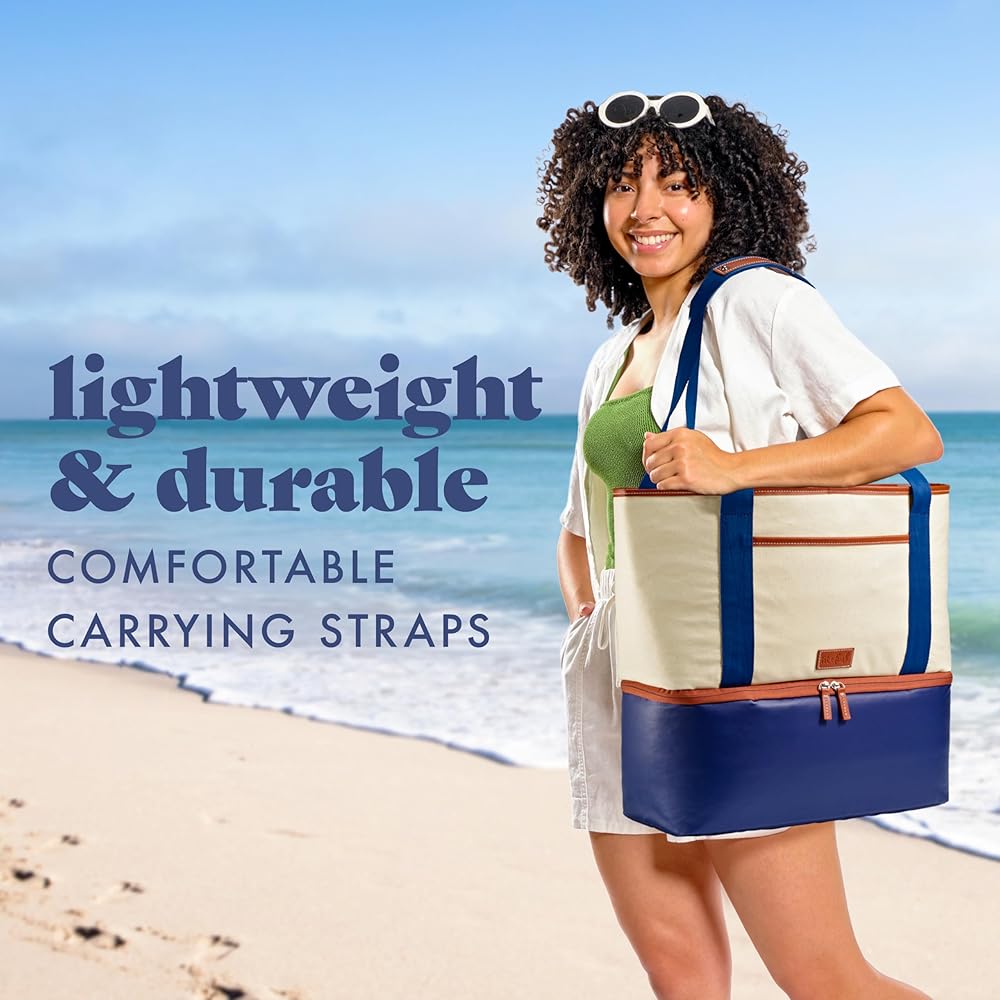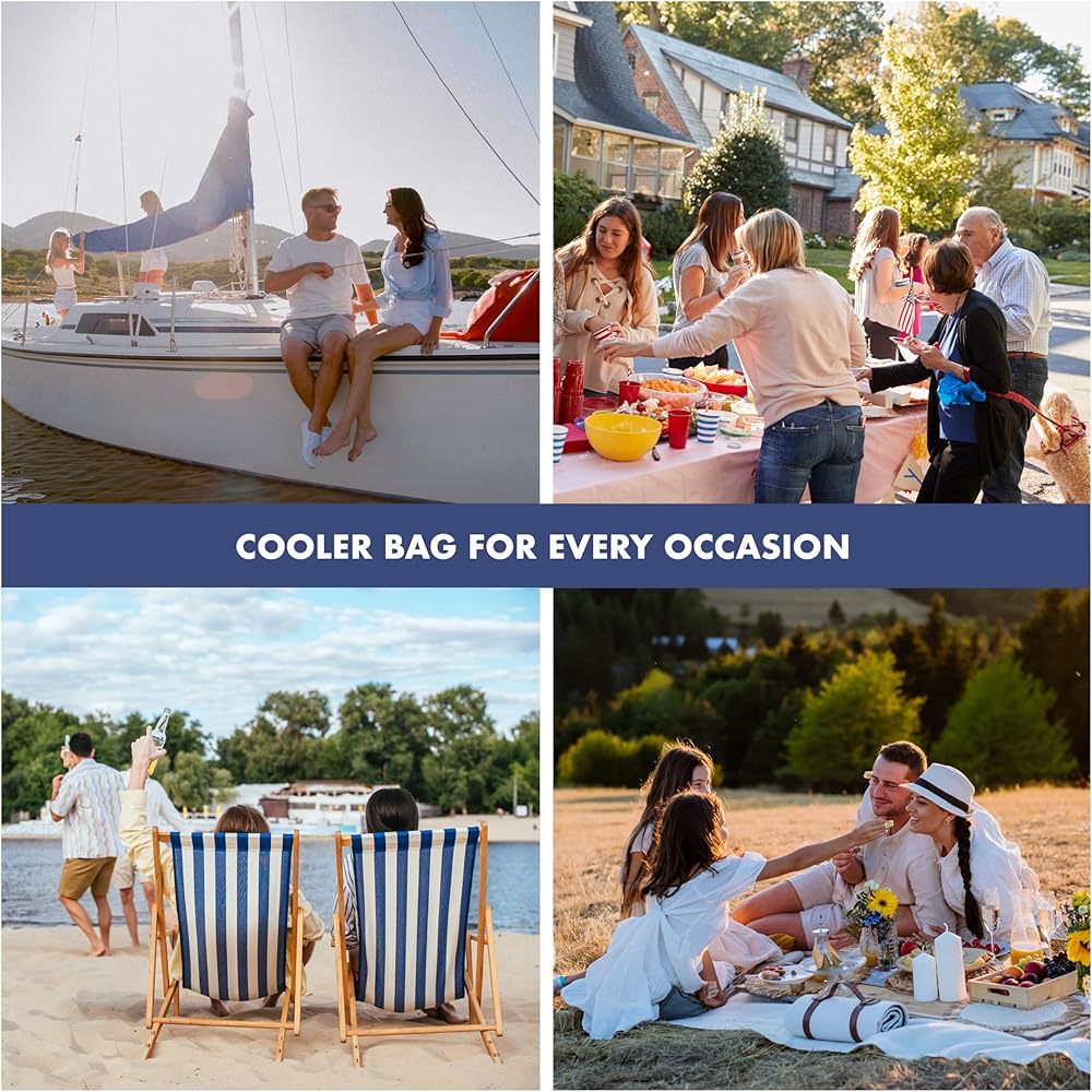 MULTI PURPOSE - Our beach cooler bag features long comfortable straps for easy over the shoulder carrying, ideal for on-the-go. Lightweight tote cooler for camping, boat days, tailgating, or any activity. Eliminate the need for multiple bags!