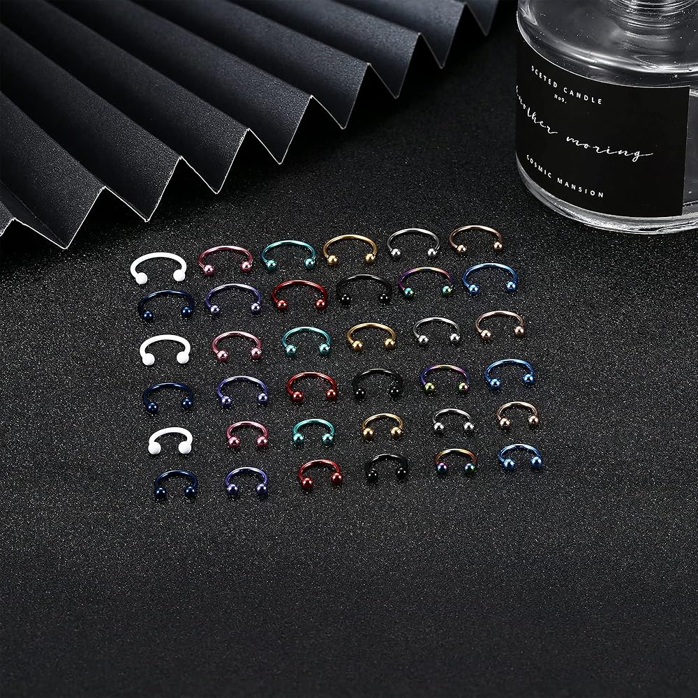 Ten Miro 36pcs 16g حدوث حاجز الحاجز الحاجز الحاجز الصلب المقاوم للصدأ الدائرية الدائرية الغضروف tragus helix حاجب حاجب حدوة حدوة حدوة جسم المجوهرات للنساء الرجال 6mm-12mm (8-12 ملم)