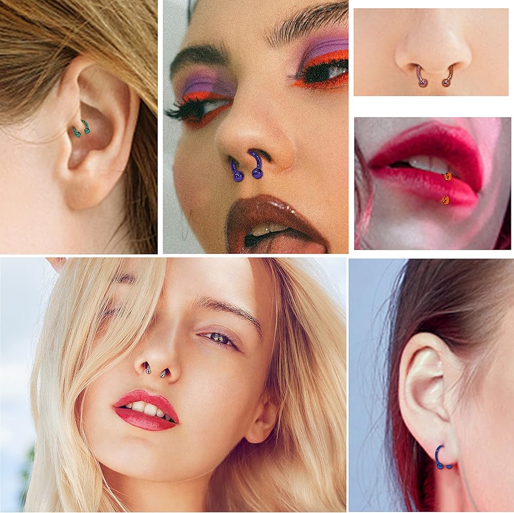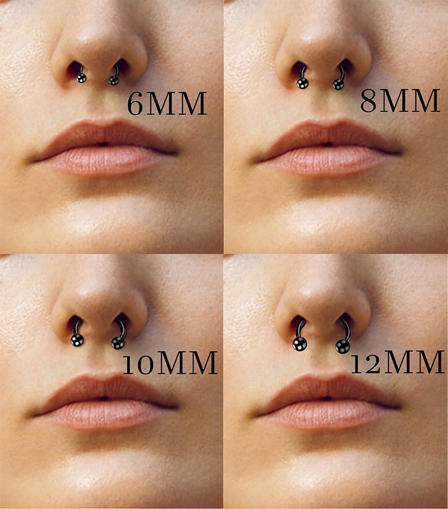 💖 NOSE RINGS SIZE💖: 16G (1.2 مم) ، القطر الداخلي: 1/4 "(6 مم) ، 5/16" (8 مم) ، 3/8 "(10 مم) ، 1/2" (12 ملم) ، كرات نهاية القطر 3 مم ، سهلة المسمار على حشائها ، أفضل مجوهرات الحاجز للنساء والرجال.
