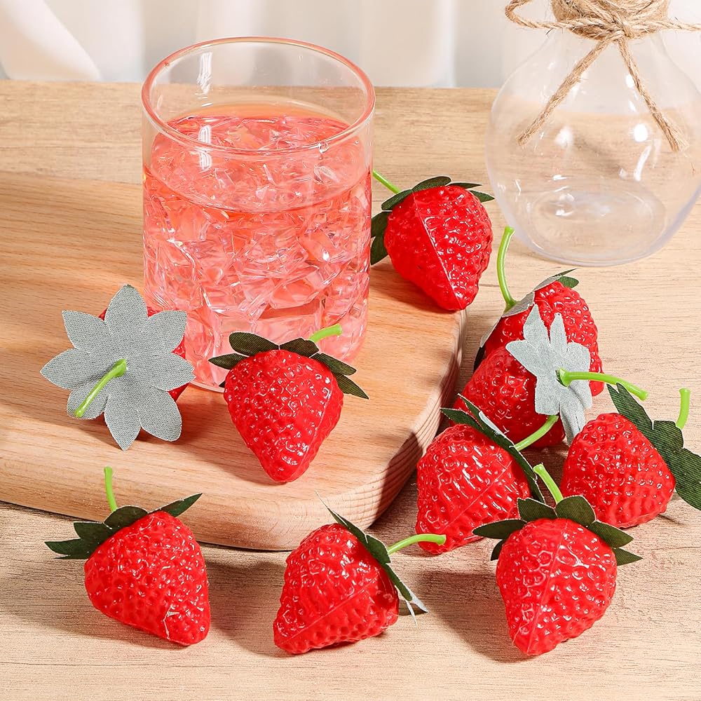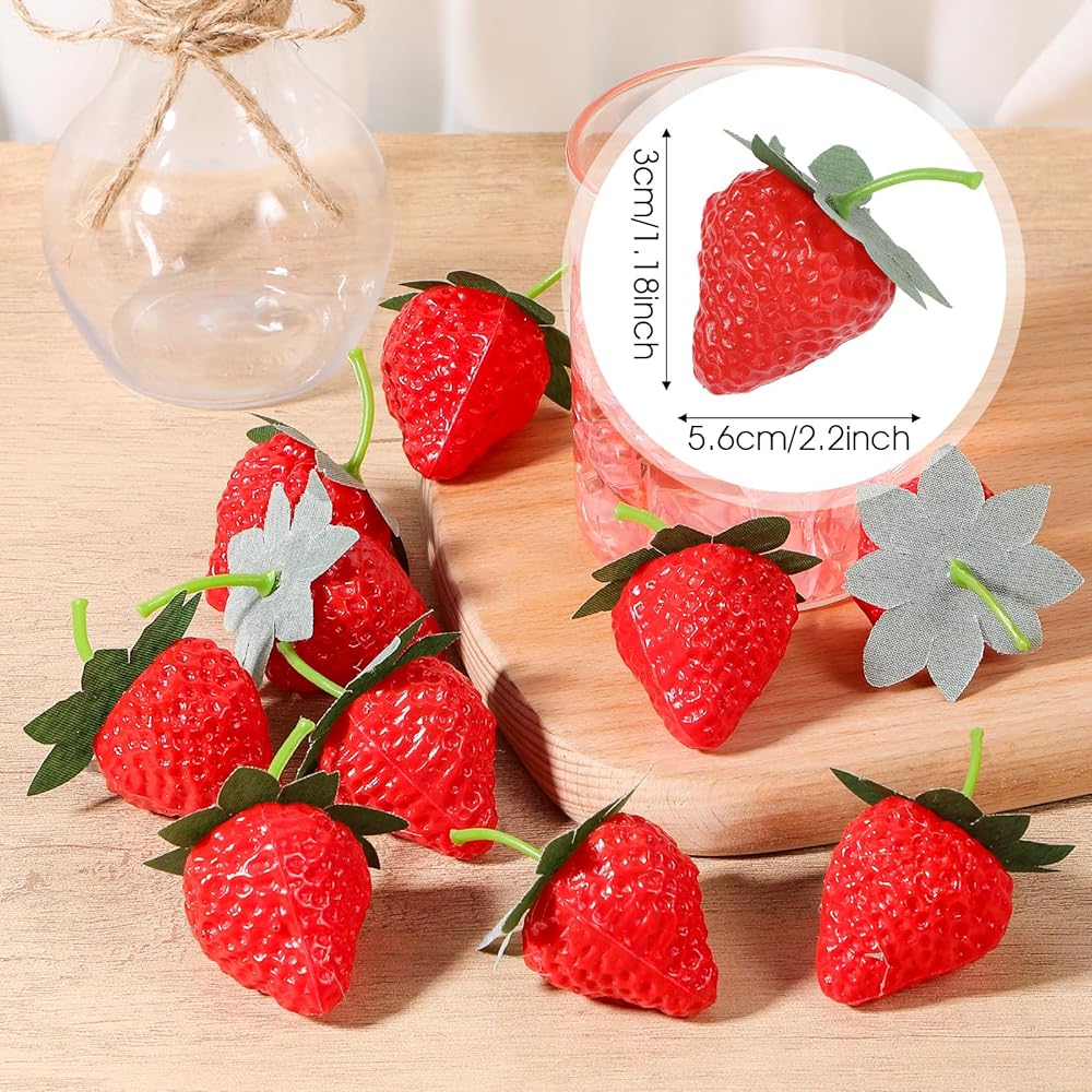 each faux plastic strawberry home decor comes with a long stem, making it easy to hang on garlands, wreaths, or any other display you have in mind; This allows for effortless customization and ensures that your decorations will stay securely in place