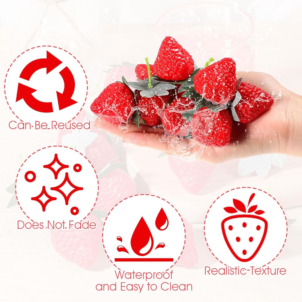 made from safe plastic material, these artificial strawberry decorations for home are built to last; You can confidently use them indoors or outdoors without worrying about them losing their vibrant color