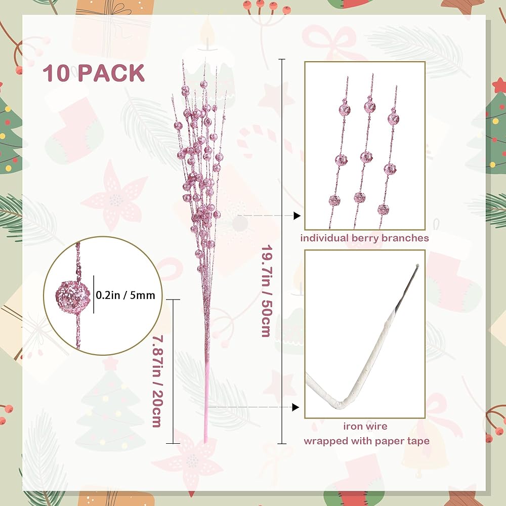 تشمل الحزمة: تأتي مع 10 حزم عصا التوت الاصطناعية ، كل حزمة لديها 12 فرع مع 5 التوت في كل فرع. خيار جيد لأفكارك DIY وزينة عيد الميلاد