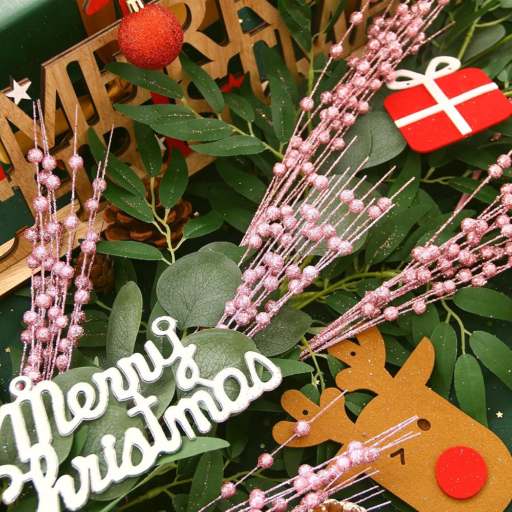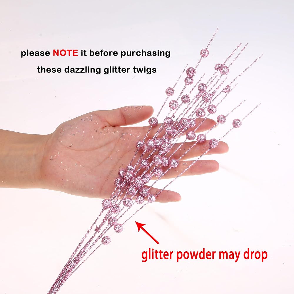 يرجى ملاحظة أن حلي عيد الميلاد هذه مغطاة بمسحوق بريق ، والذي قد يسقط عند تفريغ الحزمة أو استخدامها. يرجى التأكد من أنك لا تمانع في ذلك قبل شراء هذه الأغصان اللامعة المبهرة