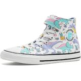 Canvas upper with that classic Chucks look and feel Soft, foam underfoot cushioning helps support comfortable play Adjustable strap for easy on and off Allover vintage-inspired dinosaur print brings some fun to their rotation Iconic Chuck Taylor ankle patch and All Star license plate