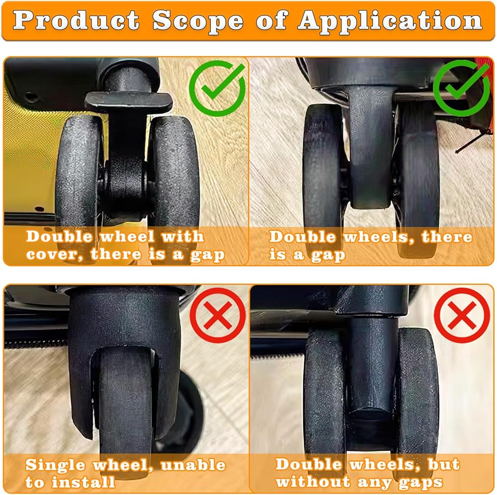 من الصعب أن تسقط : كل غطاء من عجلة الأمتعة لديه مساحة أكبر تلتف حول العجلة. وبهذه الطريقة ، يمكن أن تمنع الغطاء الوقائي بشكل فعال من الانفصال عن عجلة الأمتعة عندما تتدحرج ، وفي الوقت نفسه حماية جانب الإطار بشكل أفضل