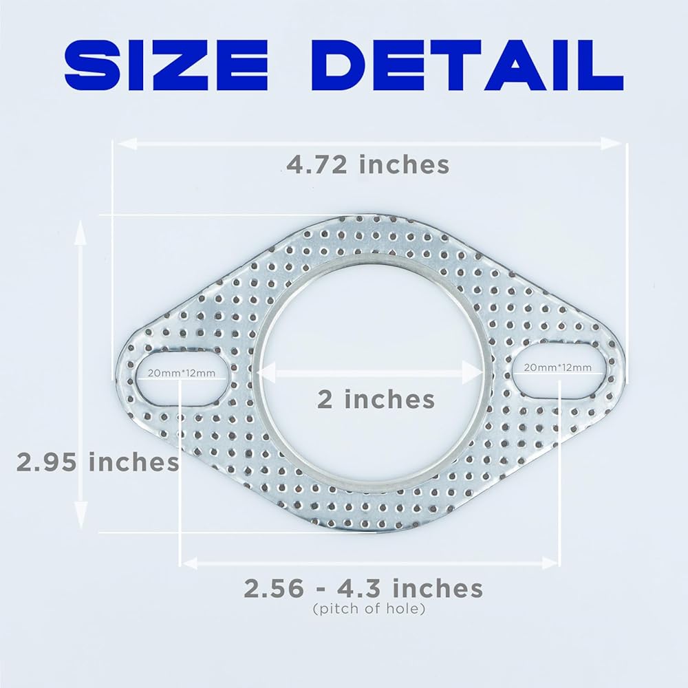 2 PCS Exhaust Gasket, 2'' - 2 Bolt Exhaust Flange Gasket, Exhaust Pipe Gasket for Exhaust System, Automotive Accessories by KeeRoarin