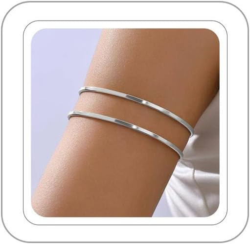 Silver Arm Cuff for Women--Upper arm cuffs bracelet exquisite and fashionable,adopting electroplating technology to ensure the durability and long-lasting glossiness of the arm bracelet,making you elegant, intellectual,and dazzling in life