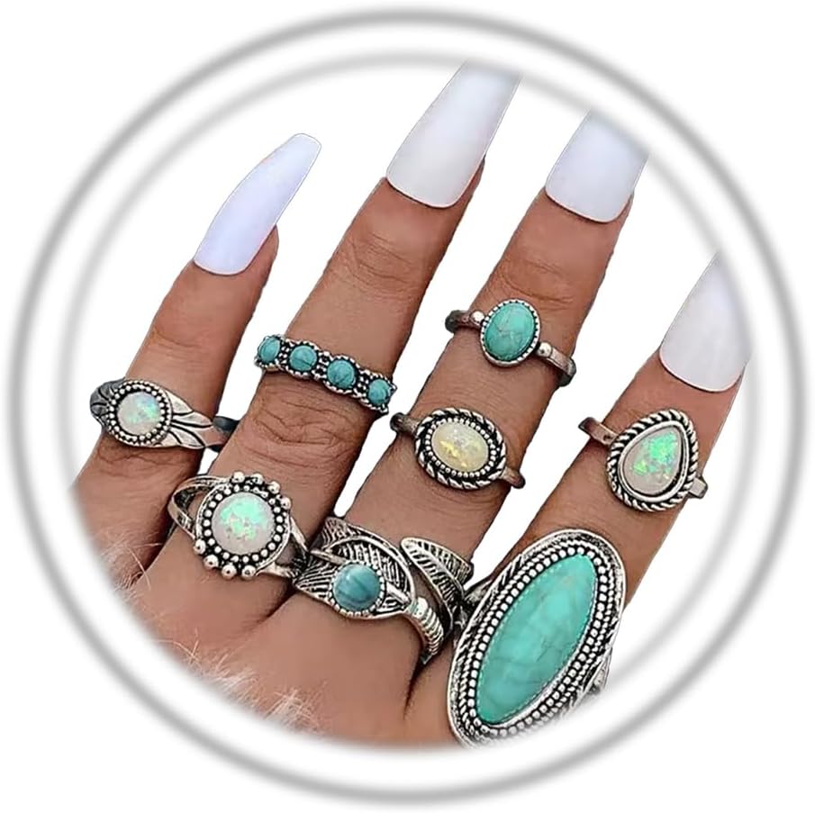 Bohemian Turquoise Ring Set:Turquoise Ring set a wide range of stylish rings,you can accessorize with anything, ,bohemian rings look very personal and you can wear a different ring every day depending on your mood,suitable for all occasions and costumes