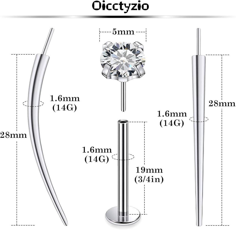 - كل حجم المقياس: 16g (1.2 مم) ، أزرار قابلة للارتداء طول: 1/4in = 6mm ، قطر الأحجار الكريمة: 3 مم.