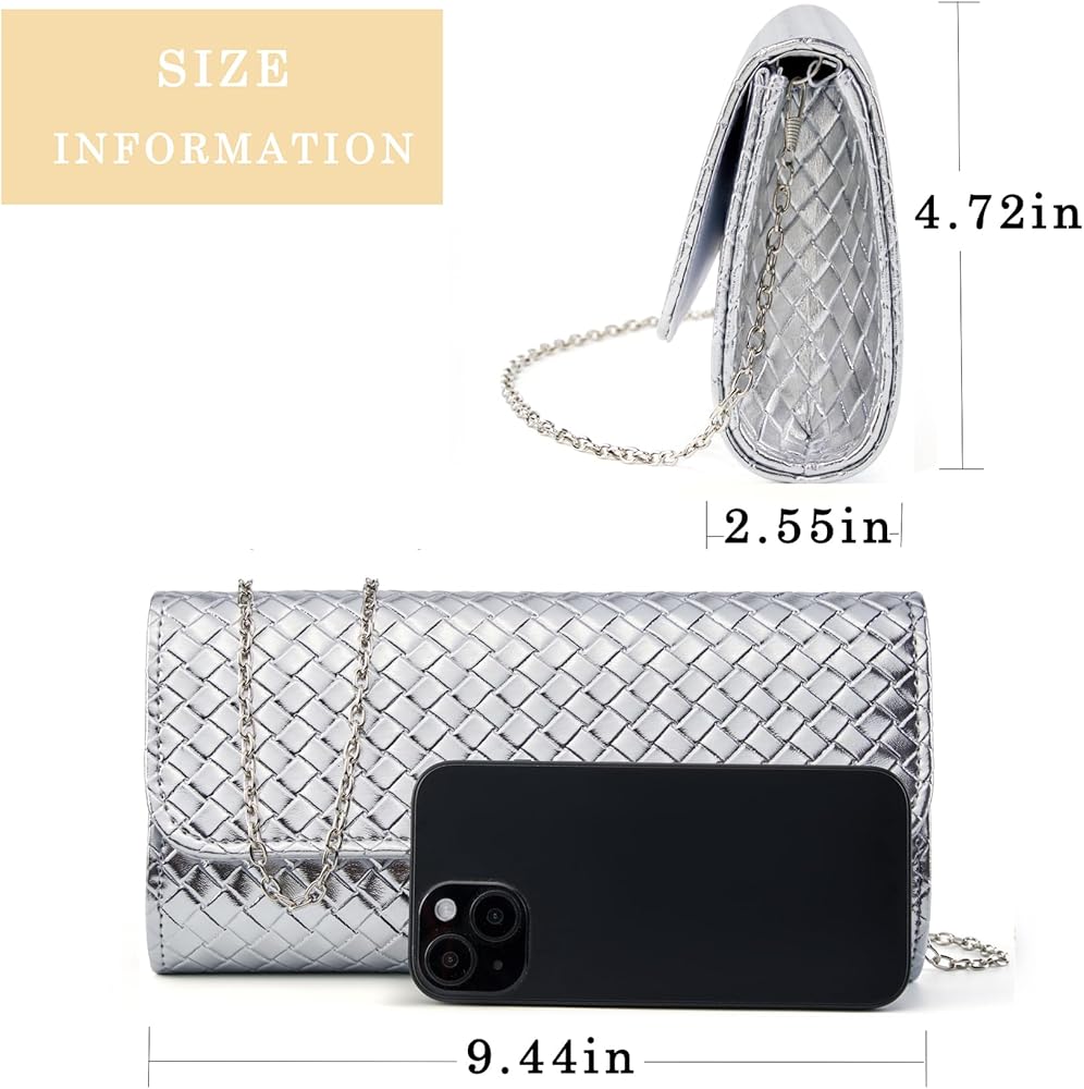 Size: 9.4"(L) x 2.3"(W) x 4.9"(H)You can be clutched by hands or hung on shoulders with the adjustable shoulder strap.