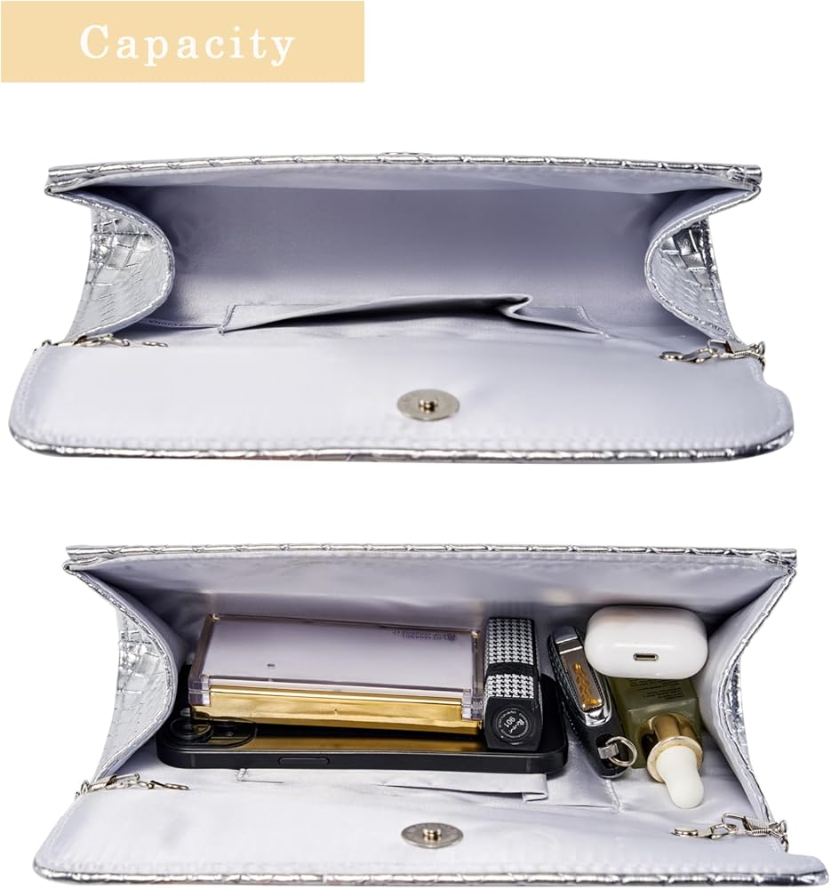 Capacity: Interior space is enough to carry your cell phone, cards, money, car keys, small wallet, compact mirror, lip gloss and a pack of gum.