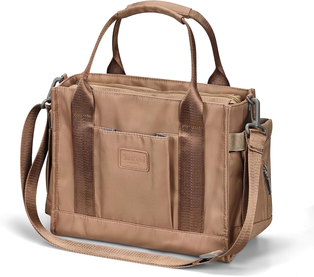 Multiple Organized Pockets: The travel messenger equipped with several internal compartments and external pockets, this tote allows easy organization of essentials such as phones, wallets, keys, and earbuds, making everything easily accessible while keeping items neatly arranged