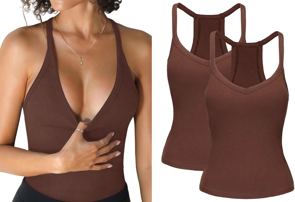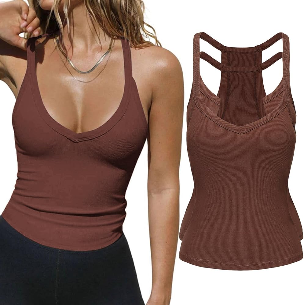 قمم الدبابات للنساء v الرقبة والمتسابقين ، ويظهر بعض الانقسامات وخلق مظهر مثير أكثر سحرًا. النساء الخروج من قمم الزوج مع الجينز ، والسراويل ، التنانير ، اللباس ، السراويل اليوغا.